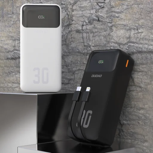 A Dudao K15MAX Powerbank kiváló megoldás mindenkinek, akinek erős és megbízható energiaforrásra van szüksége minden helyzetben. A lenyűgöző, 30000mAh kapacitásának köszönhetően számos alkalommal feltöltheti okostelefonját anélkül, hogy konnektort kellene keresnie. Az eszköz 22,5W-os gyorstöltést kínál, és támogatja a PD és QC technológiákat, ami rendkívül sokoldalúvá teszi. A beépített USB-C és Lightning kábelek megszüntetik az extra kábelek szükségességét. Akár öt különböző kimenettel rendelkezik, így egyszerre több eszközt is tölthet. A masszív kialakítás és a minimalista dizájn teszi teljessé az egészet, amivel a Dudao K15MAX tökéletes útitárs utazáshoz és mindennapi használathoz.
