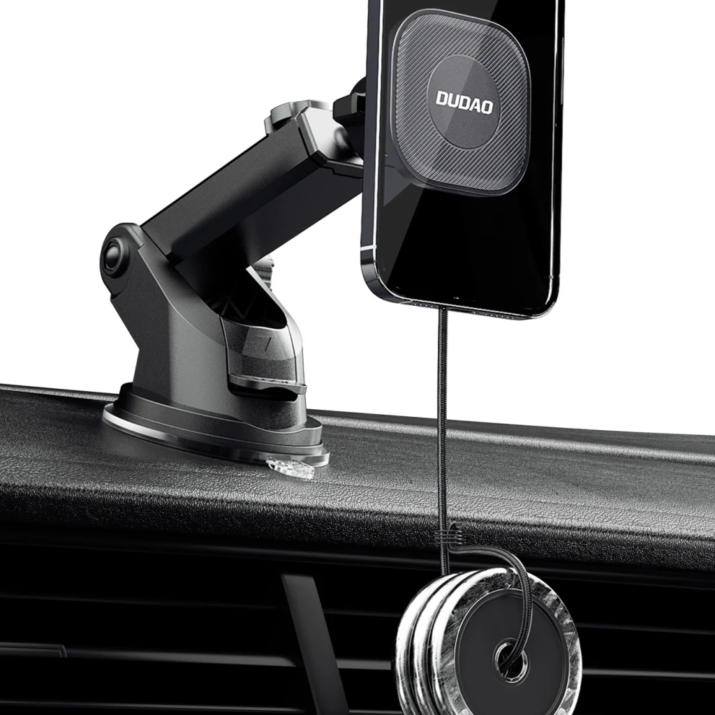 A Dudao F6Max egy mágneses autós tartó teleszkópos karral. Ennek köszönhetően a tartozék lenyűgöző beállítási lehetőségeket kínál, így tökéletesen illeszthetjük igényeinkhez. Kiváló minőségű anyagokból készült, sík felületre szerelhető, mind a műszerfalra, mind a szélvédőre. A tartó 6 erős mágnessel és erős tapadókoronggal van felszerelve, amelyek garantálják a tartó stabilitását és a telefon biztonságát.
