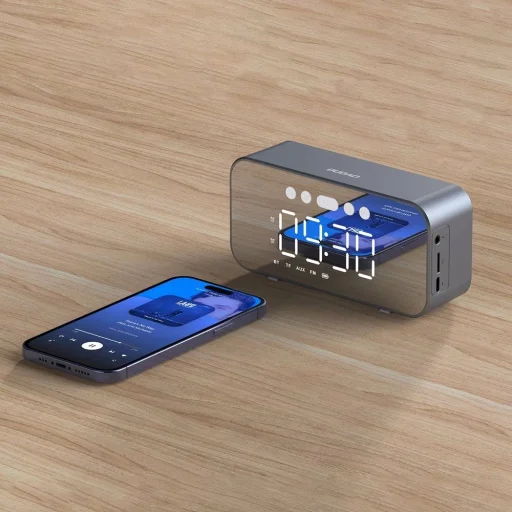 Ez az eszköz lehetővé teszi, hogy élvezd a zenét és meghallgasd kedvenc könyveid vagy rádióállomásod felvételeit bárhol is legyél. Az esztétikus és funkcionális ébresztőóra hangszóró kompatibilis bármilyen eszközzel, amely Bluetooth vezeték nélküli kapcsolattal van ellátva. Hallgass zenéket saját zenei gyűjteményedből, amelyet okostelefonodon vagy laptopodon tárolsz, amikor csak kedved tartja. A hangszóró rendelkezik SD kártya olvasóval is, amelyről zenét játszhatsz le rajta.