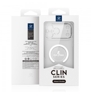 A Dux Ducis Clin Mag egy átlátszó tok, amelyet az iPhone 17 Pro Max készülékhez terveztek, és amely eleganciát ötvöz erős védelemmel. Kiváló minőségű Bayer TPU + PC anyagokból készült, amelyek garantálják a tartósságot, a sárgulás ellenállását és a kényelmes mindennapi használatot. A 38 neodímium mágnesnek köszönhetően a tok teljesen kompatibilis a MagSafe rendszerrel – biztonságosan tartja a kiegészítőket és lehetővé teszi a gyors vezeték nélküli töltést. A megerősített sarkok légpárnákkal hatékonyan elnyelik az ütéseket, védve a telefont az esésektől. A kristálytiszta dizájn lehetővé teszi, hogy élvezze az iPhone eredeti megjelenését, miközben megbízható védelmet nyújt.