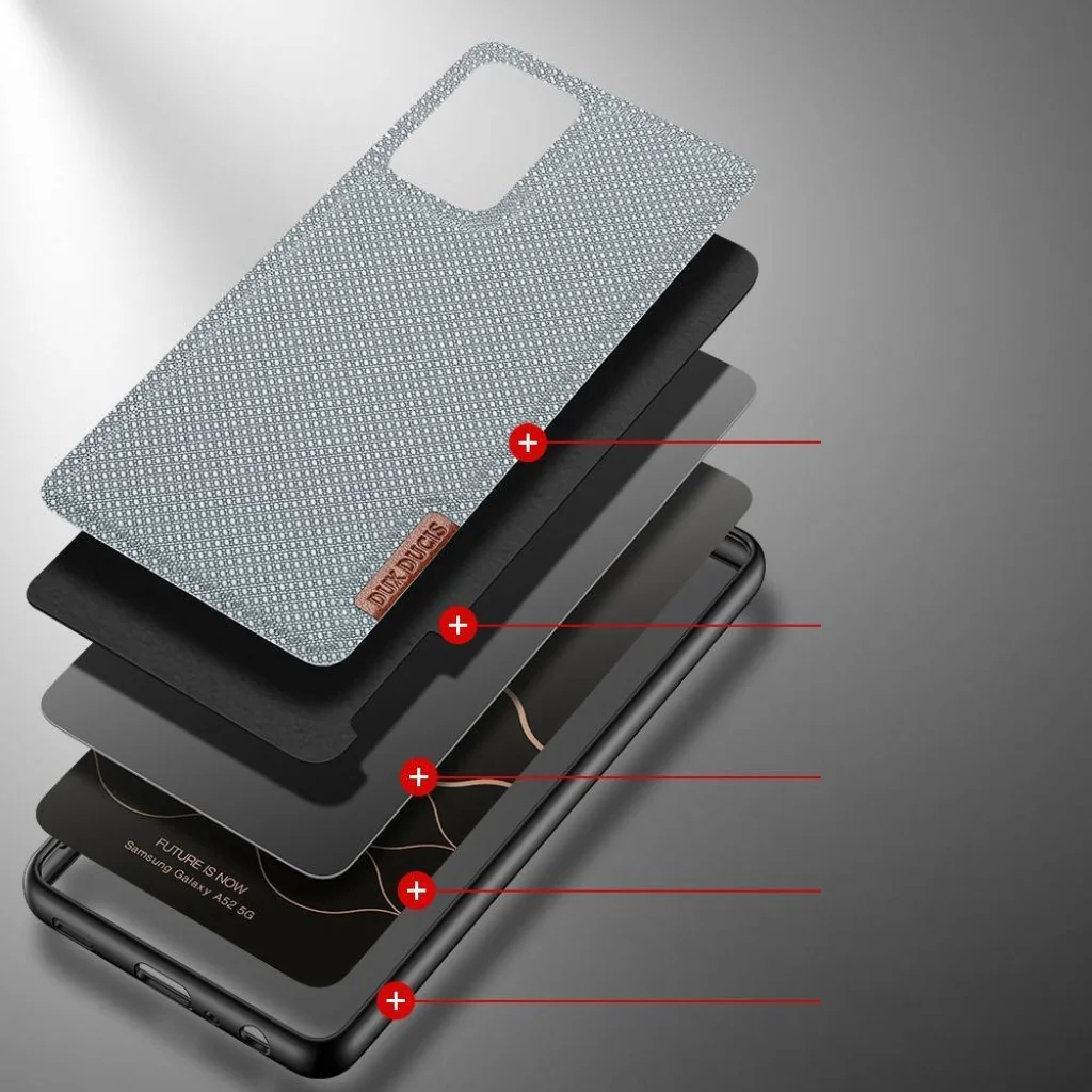 Emelje ki Samsung A72 4G / 5G telefonja eleganciáját és biztosítsa számára a megérdemelt védelmet a Dux Ducis Fino nylon bevonatú tokkal! Ez a stílusos, kék színű tok tökéletes választás azoknak, akik a kifinomult megjelenést és a mindennapi megbízható funkcionalitást egyaránt keresik.