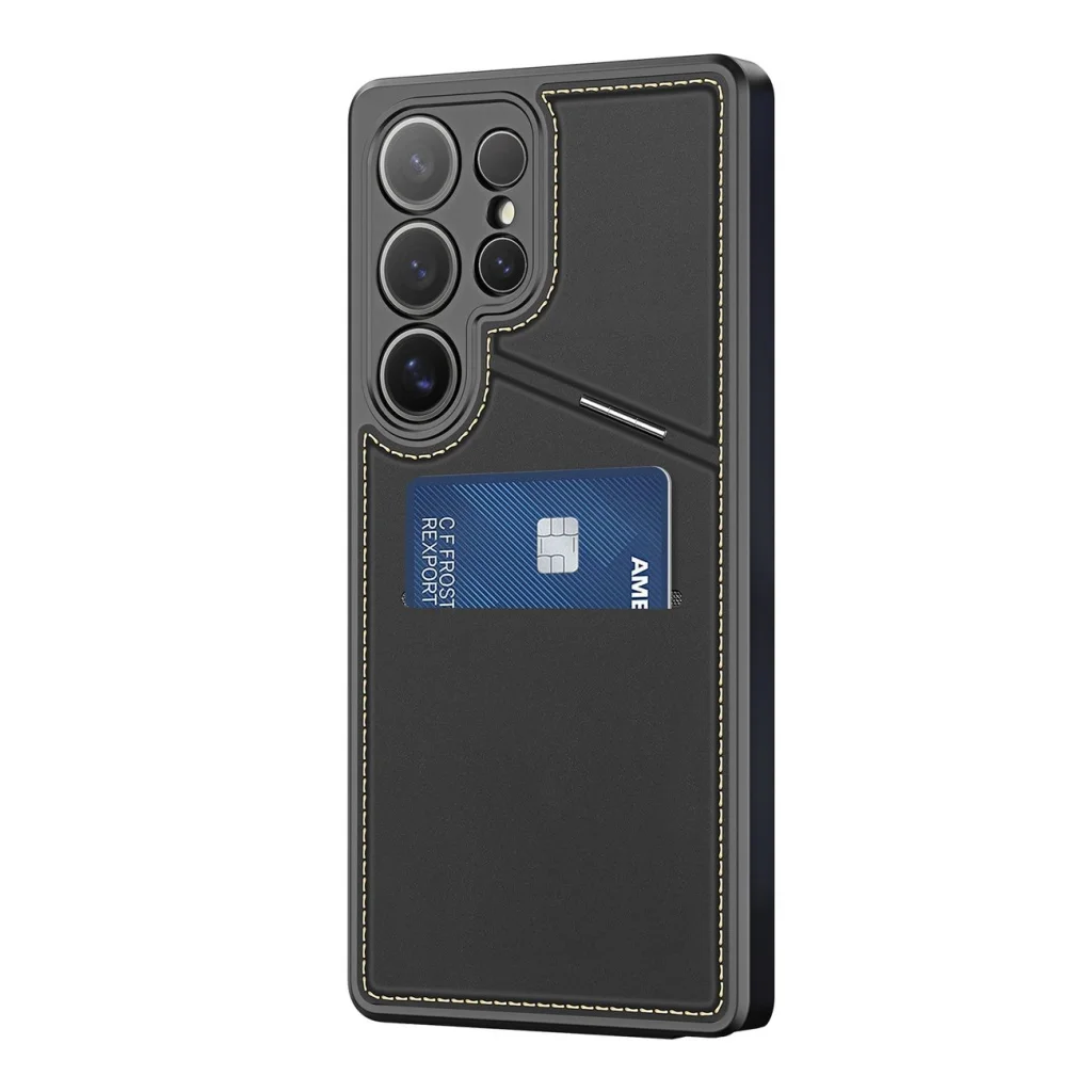 Tartós konstrukció kiváló minőségű anyagokból A tok prémium bőr és rugalmas TPU kombinációjából készült, amelyek hatékony védelmet nyújtanak karcolások, ütődések és ütések ellen, miközben hosszú ideig esztétikus megjelenést biztosítanak. Állvány funkció a kényelem érdekében A beépített állvány lehetővé teszi, hogy telefonját tökéletes helyzetbe állítsa filmnézéshez, videohívásokhoz vagy munkavégzéshez, szabadon hagyva a kezét és fokozva a használati kényelmet. Praktikus kártyatartó nyílások Az integrált kártyatartó nyílásokkal a tok egyben pénztárcaként is funkcionál, lehetővé téve a fizetési kártyák, dokumentumok vagy készpénz kényelmes tárolását. Mágneses záródás a biztonságért A tok mágneses záródással van ellátva, amely megvédi készülékét és annak tartalmát, miközben gyors hozzáférést biztosít a telefonhoz. Elegáns és funkcionális dizájn A minimalista fekete megjelenés eleganciát kölcsönöz az eszköznek, ezáltal a tok tökéletes mindennapi használatra és hivatalosabb helyzetekre is.