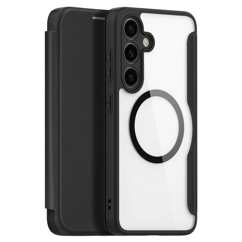 Dux Ducis Skin X Pro egy mágneses fliptok, mely ökológiai bőrből készült, és kompatibilis a MagSafe technológiával. A stílusos és funkcionális borító hatékonyan védi a telefont minden oldalról, belsejében pedig praktikus rekeszek találhatók hitelkártyák vagy dokumentumok számára. Ezen kívül az integrált gombok és a precíz kivágások garantálják a könnyű hozzáférést minden porthoz, a mágneses zár pedig védi a képernyőt a véletlen kinyílástól.