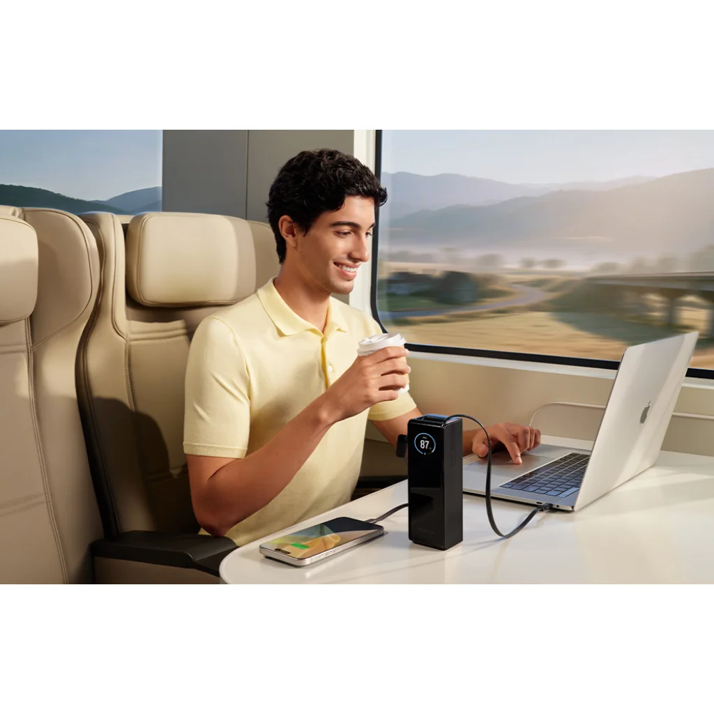 Az EcoFlow RAPID Powerbank ideális választás azoknak, akik útközben, munka közben vagy az egyetemen is szeretnék biztosítani eszközeik energiaellátását. Képes akár 170 wattos teljesítményt biztosítani az USB-C porton és két beépített kábelen keresztül. Kompakt mérete ellenére nagy kapacitást kínál, és kényelmes használatot biztosít a beépített 100W-os USB-C kábeleinek köszönhetően. A robusztus váz és az X-Core 3.0 technológia megbízhatóságot és biztonságot nyújt. Az EcoFlow X-Guard technológiája biztonságosan védi az eszközt a túltöltés, túlmelegedés és rövidzárlat ellen, valós idejű felügyelettel. A powerbank TFT kijelzőt is tartalmaz, amely valós időben mutatja az akkumulátor állapotát, és az EcoFlow alkalmazással teljes körűen vezérelhető.