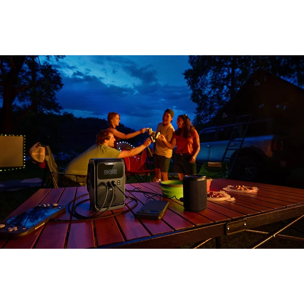 Az EcoFlow TRAIL 300 DC állomás két USB-C PD 140 W-os portot, két USB-A 12 W-os portot és egy 12 voltos autós aljzatot kínál. Ez lehetővé teszi, hogy egyszerre több eszközt is csatlakoztass hozzá. Ez különösen kényelmes lehet, ha több készüléket használ a természetben vagy egy baráti társasággal utazik – senkinek sem kell várakoznia a sorára a telefon vagy a laptop töltéséhez!