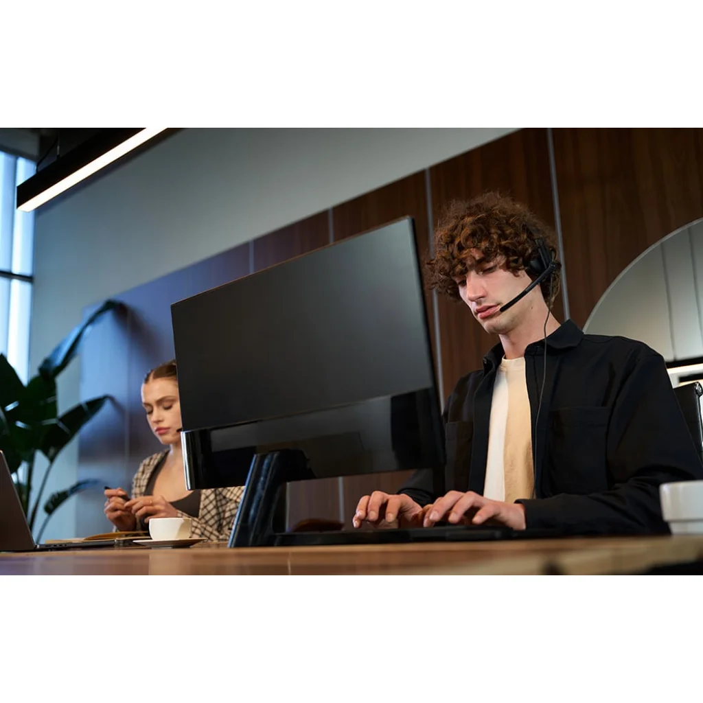 AI zajcsökkentés: A beépített mikrofon DNN algoritmussal és AI zajszűrő technológiával hatékonyan csökkenti a környezeti hangokat, a hangodra összpontosítva. Az alkalmazott megoldás lehetővé teszi, hogy kényelmesen dolgozhass nyitott terekben, call centerekben és bárhol, ahol a kommunikáció létfontosságú.