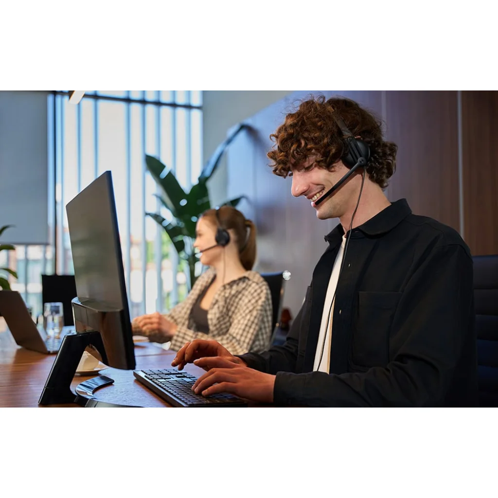 Teljes vezérlés kéznél: A kábelbe integrált távirányítóval fogadhatja és fejezheti be a hívásokat, állíthatja a hangerőt és gyorsan elnémíthatja a mikrofont. Ez lehetővé teszi, hogy hatékonyan reagálhasson egy megbeszélés során anélkül, hogy megszakítaná a munkáját.