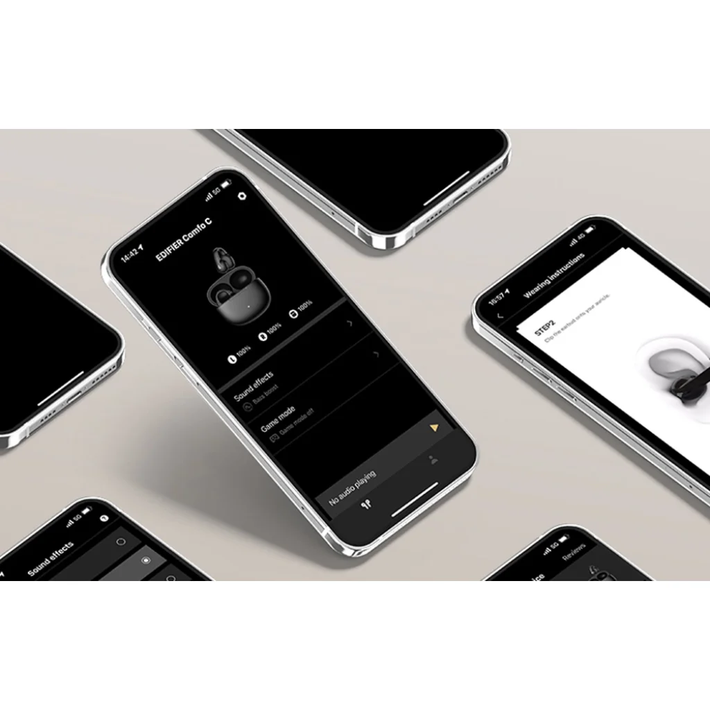 Az Edifier Comfo C innovatív dizájnt kényelemmel és magas hangminőséggel ötvözi. Könnyű kialakításukkal (darabonként 5,8 gramm) és nyitott fülkampójukkal kényelmes viseletet biztosítanak akár órákon keresztül is. A titánium membránnal ellátott 12 mm-es dinamikus meghajtók gazdag, részletes hangzást biztosítanak, az automatikus hangcsatorna-felismerő funkció pedig lehetővé teszi, hogy szabadon cserélje a fülhallgatót a fülei között.