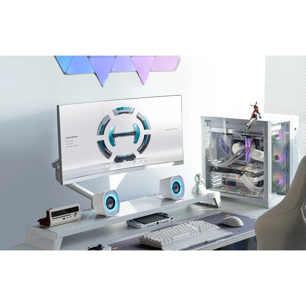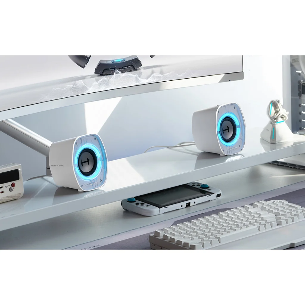 Az Edifier G1000 II hangszórók kifejezetten a játékosok és asztali felhasználók számára készültek, akik erőteljes, játékhoz való felszerelést keresnek. Kompakt méretüknek köszönhetően ideálisak a kis íróasztalokhoz anélkül, hogy sok helyet foglalnának, miközben olyan hangzást kínálnak, amely mélységével és erejével képes meglepni. A jellegzetes, futurisztikus burkolat 9 RGB háttérvilágítási móddal szemet gyönyörködtető, és jól illeszkedik mind a játékhoz, mind a minimalista munkaállomáshoz.