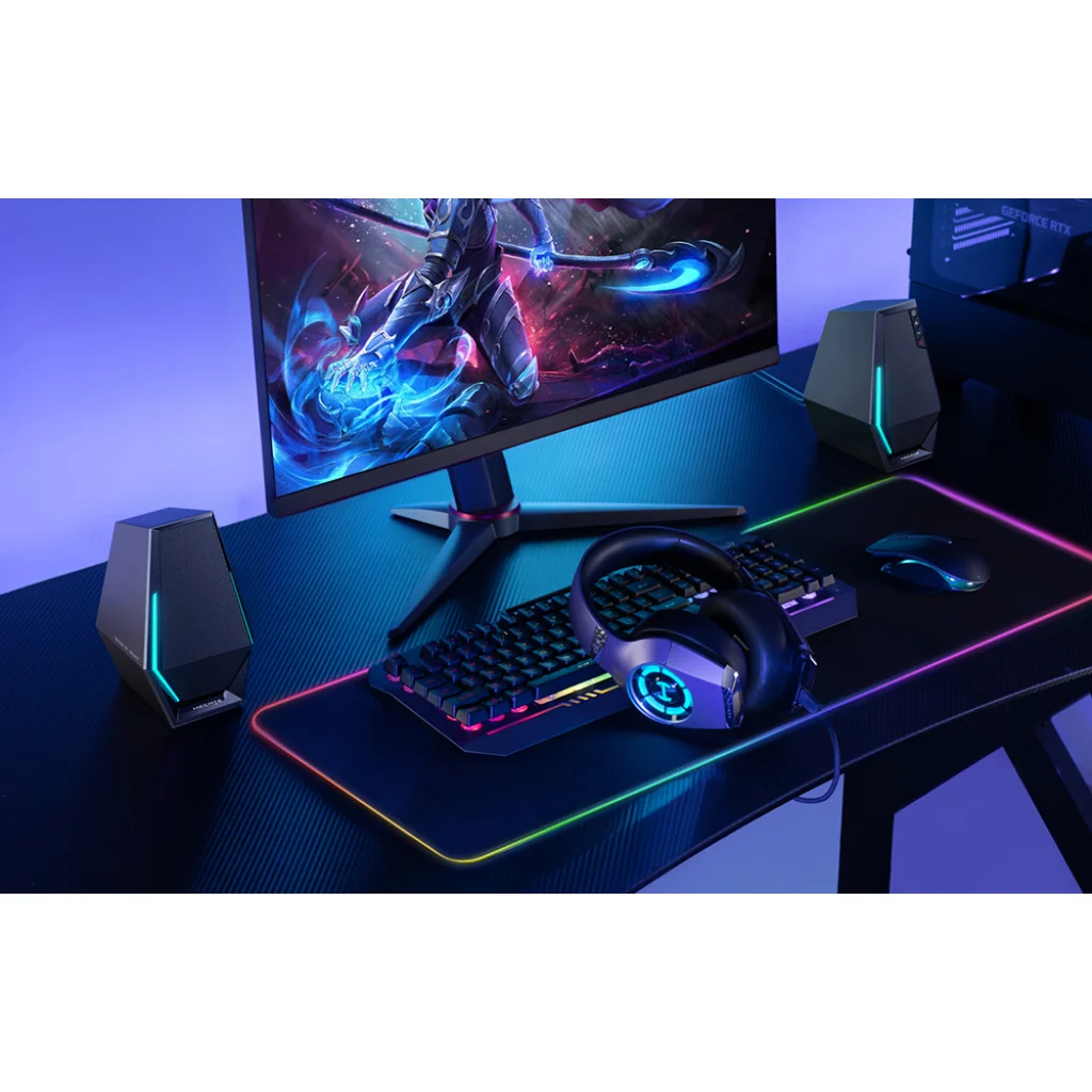 Az Edifier HECATE G1500 2.0 hangszórók tökéletes választást jelentenek a játékosoknak. A teljes tartományú 2,5"-es meghajtók garantálják a tiszta, részletgazdag hangzást, a H+ hangeffektus pedig felejthetetlen játékélményt biztosít. 3 lejátszási mód és 12 féle RGB háttérvilágítás közül is választhat. A hangszórók széles kompatibilitássukkal is kitűnnek, ugyanis 3 csatlakozási módot támogatnakl - Bluetooth 5.3, valamint USB vagy AUX 3,5 mm-es kábelen keresztüli csatlakozást.