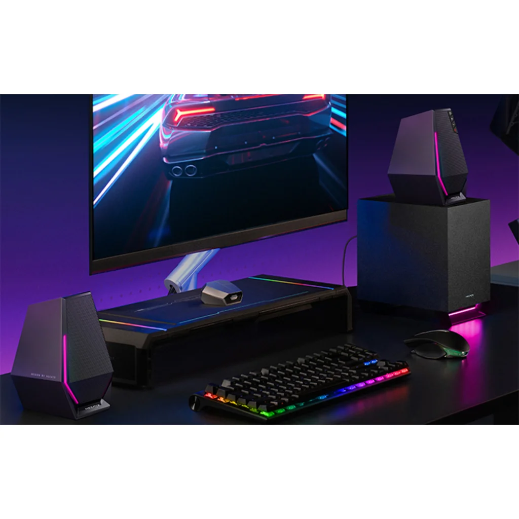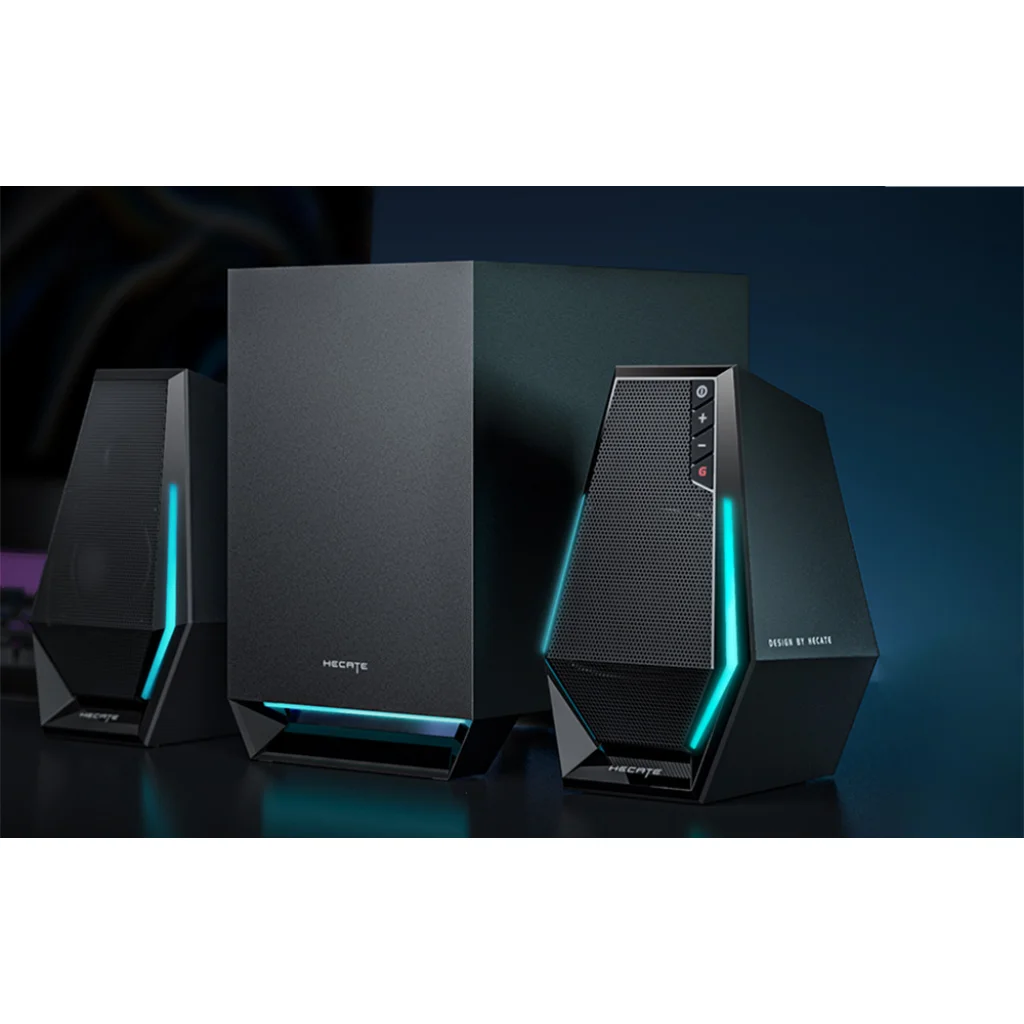 Gondoskodjon kiváló hangminőségről kedvenc játékai játszása vagy zenehallgatás közben. Az Edifier HECATE G1500 Max hangszórók tökéletes választást jelentenek a játékosoknak. A teljes körű 2,5"-es meghajtók és 4"-es mélynyomó garantálja a tiszta, gazdagon részletezett hangzást, a speciális technológia pedig felejthetetlen játékélményt biztosít. 3 lejátszási mód és 10 féle RGB háttérvilágítás közül is választhat. A hangszórók széleskörű kompatibilitásukkal is kitűnnek, és 3 csatlakozási módot támogatnak - Bluetooth 5.3-t, valamint USB vagy AUX 3,5 mm-es kábelen keresztüli csatlakozást. Figyelemre méltó a modern játéktervezés is.