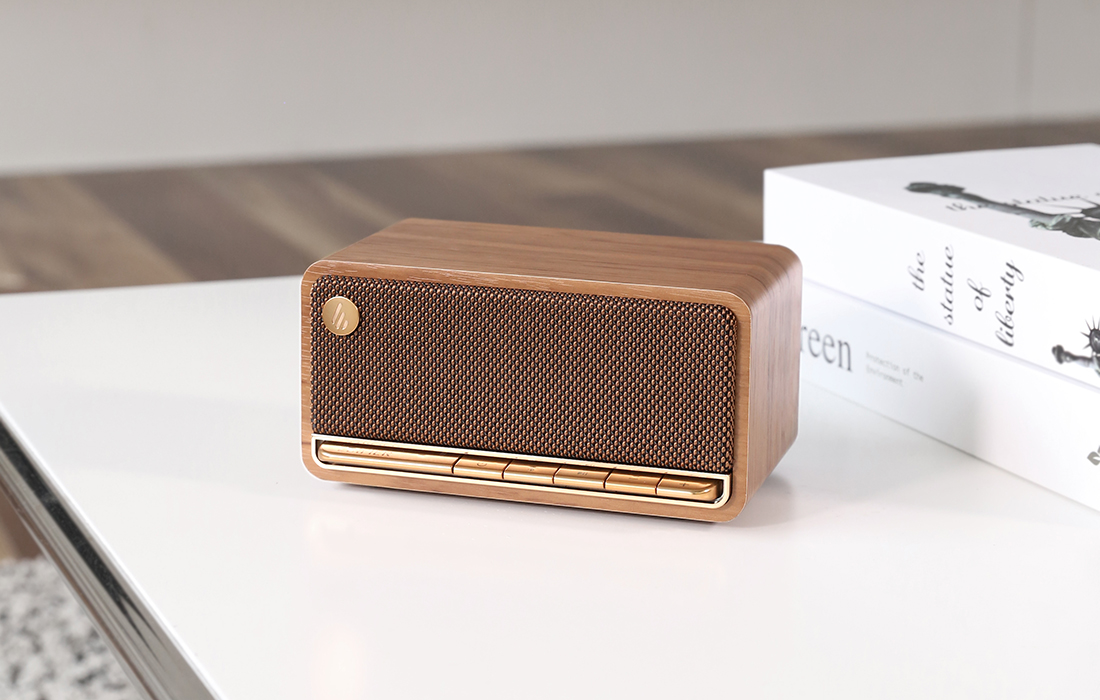 A hangszóró stílusát az 50-es 60-as évek inspirálták, így a retro stílus szerelmeseinek biztosan tetszeni fog! A fa borítás nem csak nagyon elegánsan néz ki, hanem kellemes a tapintása és csökkenti az akusztikus rezonanciát is, amivel még jobb hangminőséget nyújt. Emellett a készülék aljára speciális talpak lettek felszerelve, amik csökkentik a nem kívánt rezgéseket és nagyobb stabilitást biztosítanak a hangszórónak.