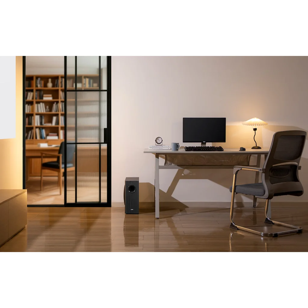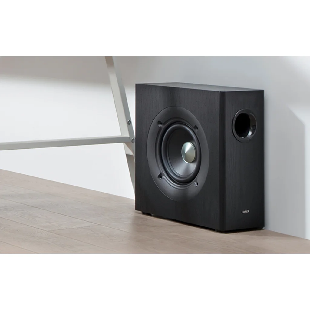 Az Edifier T5s egy aktív mélysugárzó, amelyet úgy terveztek, hogy mély, dinamikus basszusokkal töltse meg a teret, miközben esztétikus, elegáns dizájnja zökkenőmentesen illeszkedik bármilyen belső térbe. A 8 hüvelykes hosszú nyaláb mélysugárzóval és egy D-osztályú (digitális, nagy hatékonyságú digitális hangerősítő) 70 W RMS (Root Mean Square, tényleges folyamatos teljesítmény) erősítővel felszerelt mélysugárzó tiszta, erőteljes hangzást kínál 35 Hz-ig terjedő frekvenciaválaszával, így filmvetítés és zenehallgatás közben minden részletet és basszusdobbanást érezhet. A nagy teljesítményű kapcsolóüzemű tápegység és a precíziós aluláteresztő szűrés biztosítja a stabil működést és az összhangot az audio rendszerrel, moziszerű hangzásmélységet biztosítva otthonában.