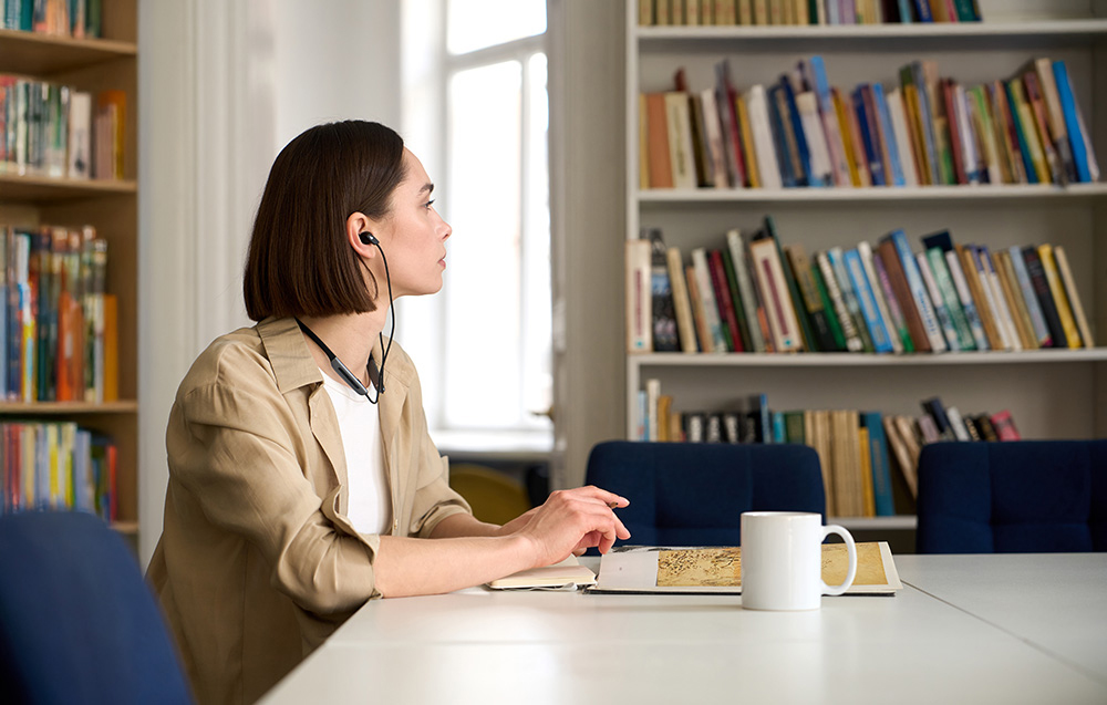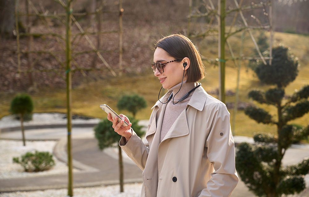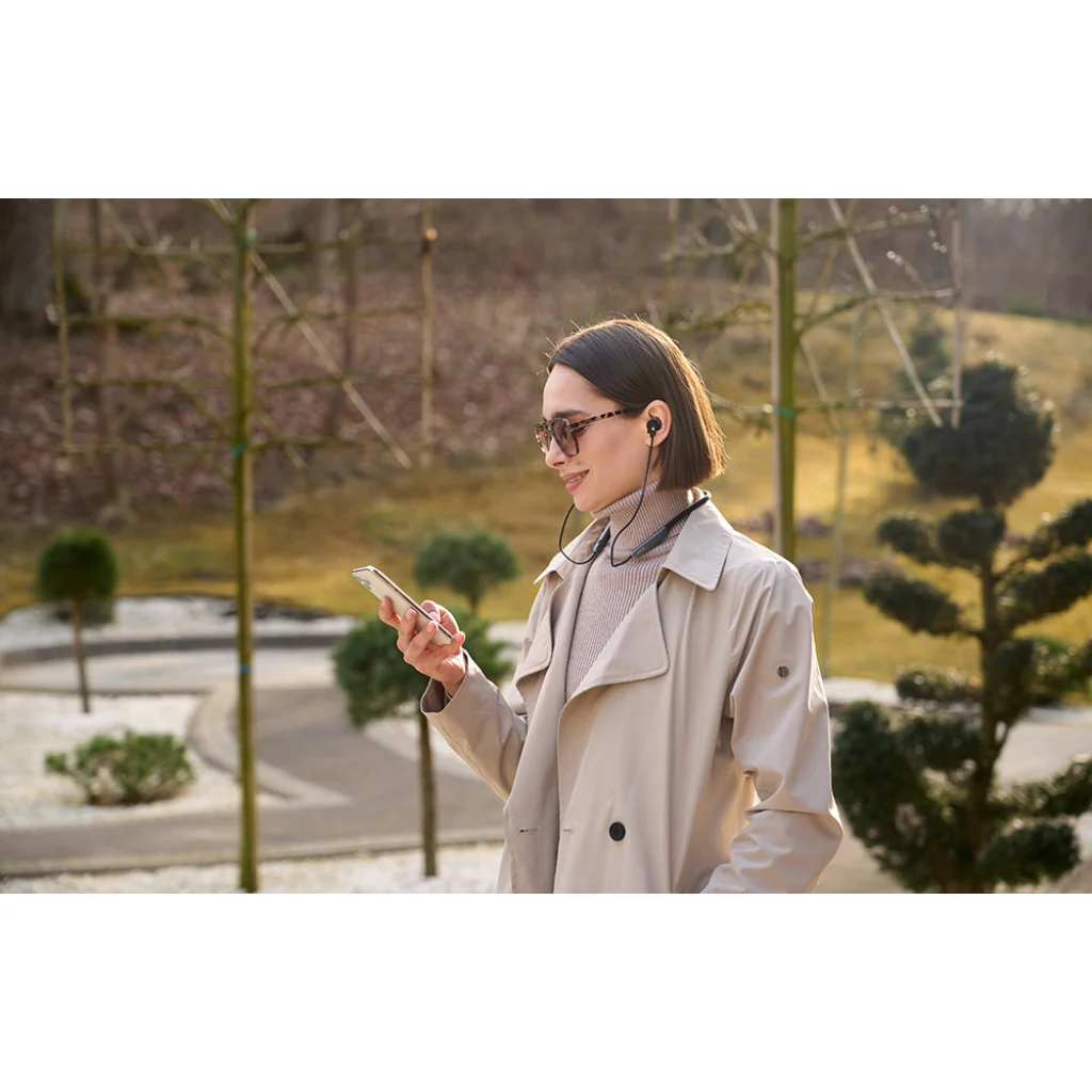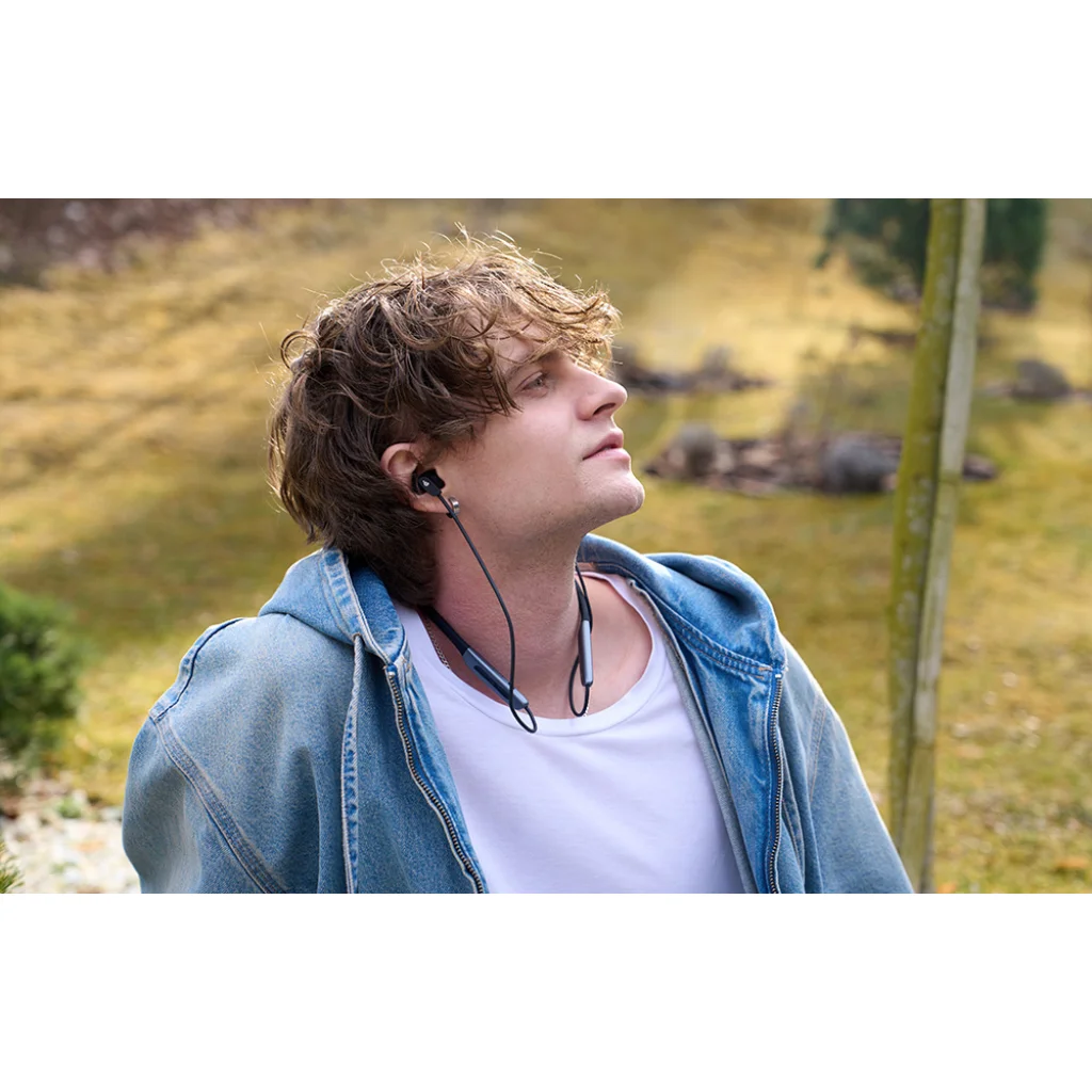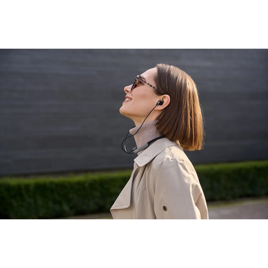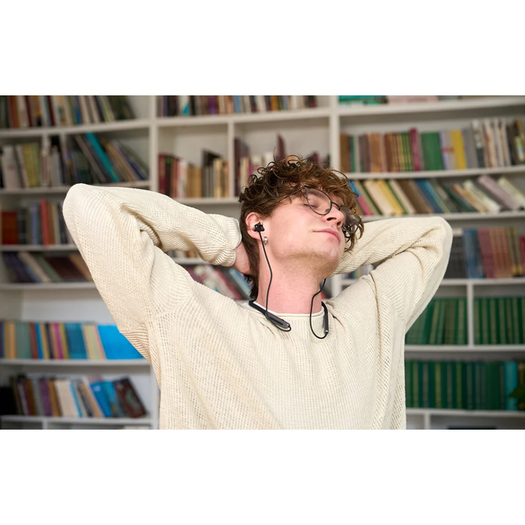 A puha, rugalmas TPE fejpánt szorosan illeszkedik a nyakadhoz, és nem csíp - még több órás viselés után sem. Ugyanakkor a fejhallgató nagyon könnyű (31 g), és a mágneses végeknek köszönhetően könnyen felcsíptethető és elrejthető anélkül, hogy a kábel összegabalyodna.