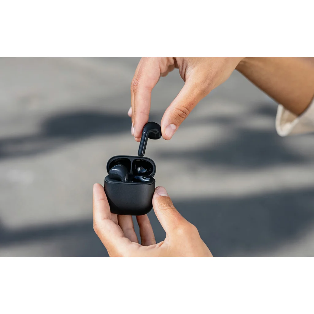 Az optimalizált félig nyitott formának és a könnyű kialakításnak köszönhetően a fülhallgató biztonságosan ül a fülben anélkül, hogy indokolatlan nyomást gyakorolna a hallójáratra. Hosszú távú használatra tervezték - fáradtságérzet nélkül. A kompakt tok elfér a zsebedben, és elegáns, minimalista kialakítása bármilyen stílushoz jól illeszkedik.