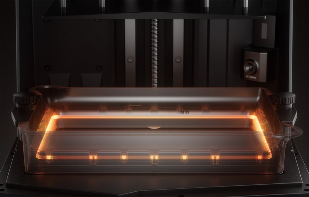 A nyomatok pontossága és minősége nagyban függ a megfelelő gyantahőmérséklettől. A Saturn 4 Ultra 16K intelligens fűtőrendszerrel van felszerelve, amely az anyagot optimális, 30°C-os hőmérsékleten tartja. Ezáltal a gyanta a megfelelő viszkozitáson marad, ami növeli a rétegtapadást, csökkenti a buborékképződést és minimalizálja a hibakockázatot. A stabil hőmérséklet az anyag egyenletes kikeményedését is befolyásolja, ami jobb minőségű végső modelleket eredményez.