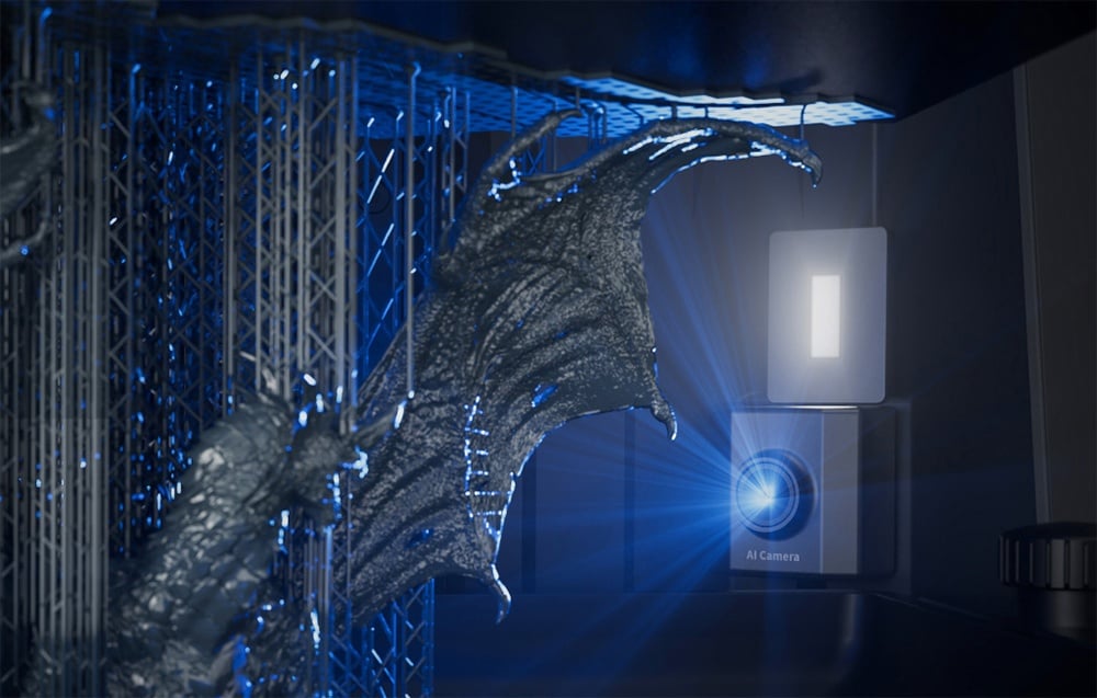 A nyomtatás közbeni váratlan hibák anyagpazarláshoz és hosszabb futási időhöz vezethetnek. A Saturn 4 Ultra 16K ezt a problémát a beépített AI-kamerával oldja meg, amely lehetővé teszi a nyomtatási folyamat valós idejű felügyeletét. A rendszer a munka minden egyes lépését elemzi, és figyelmezteti a felhasználót a lehetséges problémákra, például a nem megfelelő rétegtapadásra vagy a hiányzó anyagra. A kamera időzített felvételt is lehetővé tesz, így pontosan nyomon követheti a teljes modellkészítési folyamatot, és javíthatja a jövőbeli terveket.