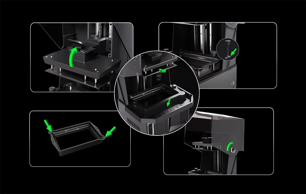 Az ELEGOO Saturn 4 Ultra 16K készüléket a maximálisan egyszerű használat érdekében tervezték. A kiváló minőségű fémház biztosítja a tartósságot és a sérülésekkel szembeni ellenállást, az ergonomikus kialakítás pedig megkönnyíti a használatot. A nyomtató billenő fedéllel, kettős kiöntőcsővel rendelkezik a precíz gyanta kiöntés érdekében, valamint cserélhető zárócsavarokkal a rendszer eltömődésének megelőzése érdekében. Ezenkívül egy csepegtetőtálca segít tisztán tartani a munkaterületet, minimalizálva a gyanta kifröccsenésének kockázatát.