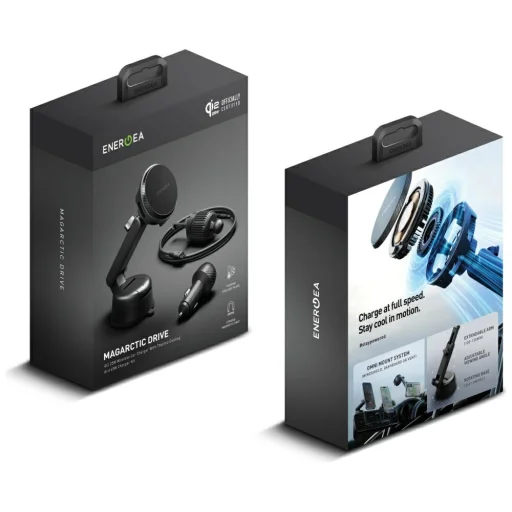 Az ENERGEA Magarctic Drive 25W Qi2 egy modern autós telefontartó, amely vezeték nélküli töltést biztosít. A Qi2 25W szabvány és a MagSafe kompatibilitás révén a telefon automatikusan és pontosan rögzül a tartóhoz, garantálva a gyors, stabil és biztonságos töltést. Az ENERGEA márka innovációt, minőséget és megbízhatóságot képvisel, és töltési megoldásaik megkönnyítik a mindennapokat. A készlet tartalmaz egy USB-C csatlakozós, 45 W teljesítményű autós töltőt is, mely maximálisan kihasználja a tartó potenciálját. A termék biztonságos és kompromisszummentes online kapcsolatot kínál vezetés közben is. A tartó használható légbeömlőn, műszerfalon és szélvédőn egyaránt. Technikai specifikációk: márka: ENERGEA, szín: fekete, mágneses terület méretei: 65 x 39 mm, bemenet: 5V/3A, 9V/3A, 12V/3A, 15V/3A, kimeneti teljesítmény: 5W / 7.5W / 10W / 15W / 25W, tápellátás: USB-C, súly: 93 g, USB-C kimeneti teljesítmény: 5V/3A, 9V/3A, 12V/3A, 15V/3A, 20V/2.25A (PD45W) és 3.3V-11V/5A (PPS55W). A készlet tartalma: - Magarctic tartó, - légbeömlő tartó, - szélvédő tartó, - 45 W autós töltő, - telepítési útmutató.