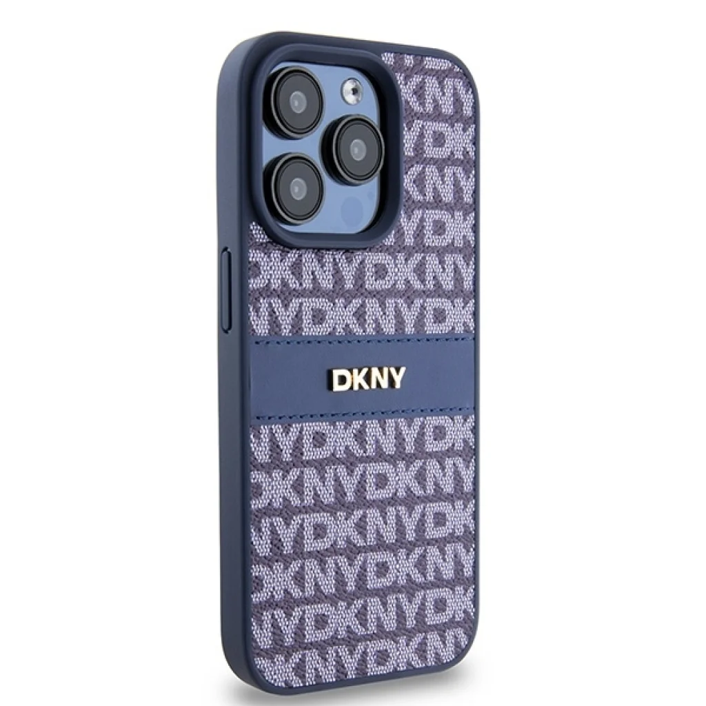 Eredeti DKNY kemény bőrtok Mono Stripe & Metal Logo DKHCP15LPRTHSLB az iPhone 15 Pro-hoz, kék