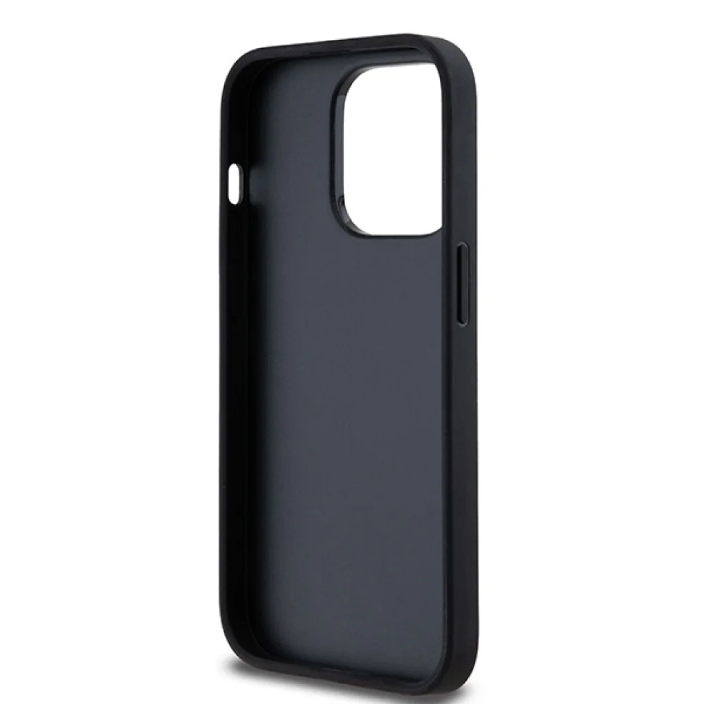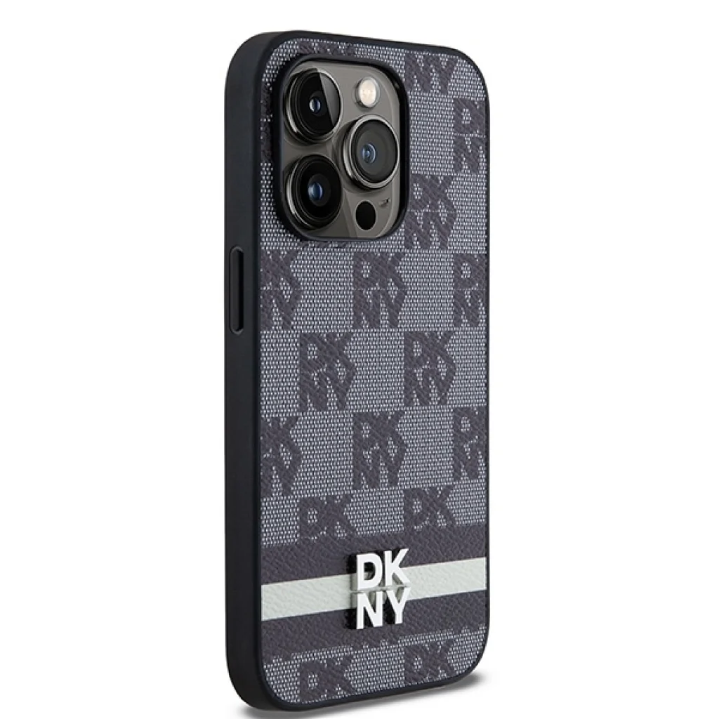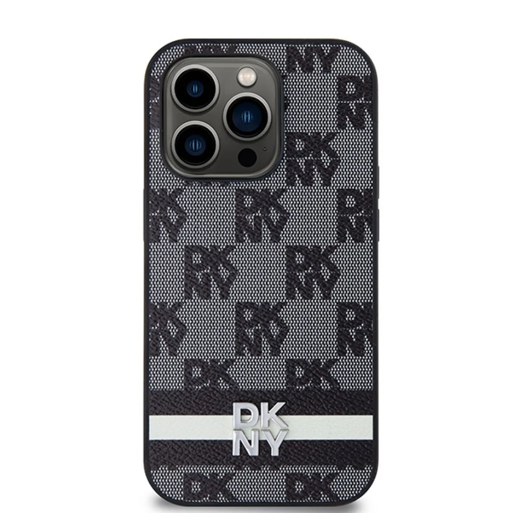 Eredeti DKNY keménytok bőr kockás és csíkos mintázattal (DKHCP14LPCPTSSK) iPhone 14 Pro fekete tok
