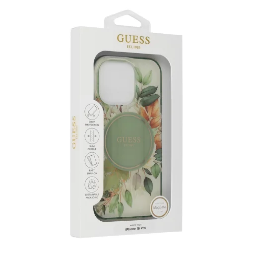 iPhone 16 Pro zöld Eredeti GUESS IML Flower & Tonal Circle Magsafe tok GUHMP16LHFWBDCEN