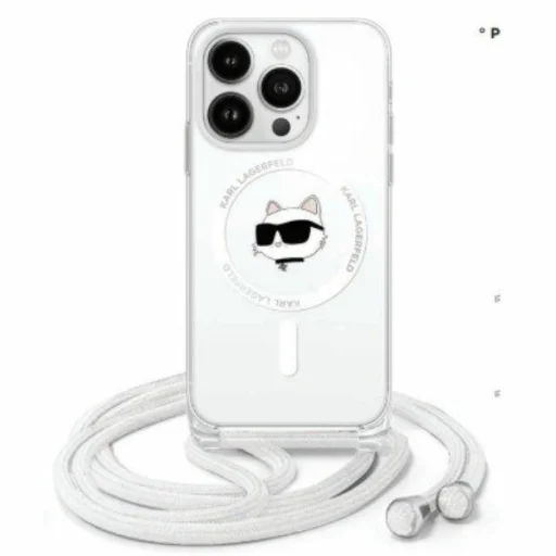 IPHONE 16 PRO Eredeti Karl Lagerfeld Keménytok IML Choupette Fej & Zsinór MagSafe (KLHMP16LHCCHNT) átlátszó tok