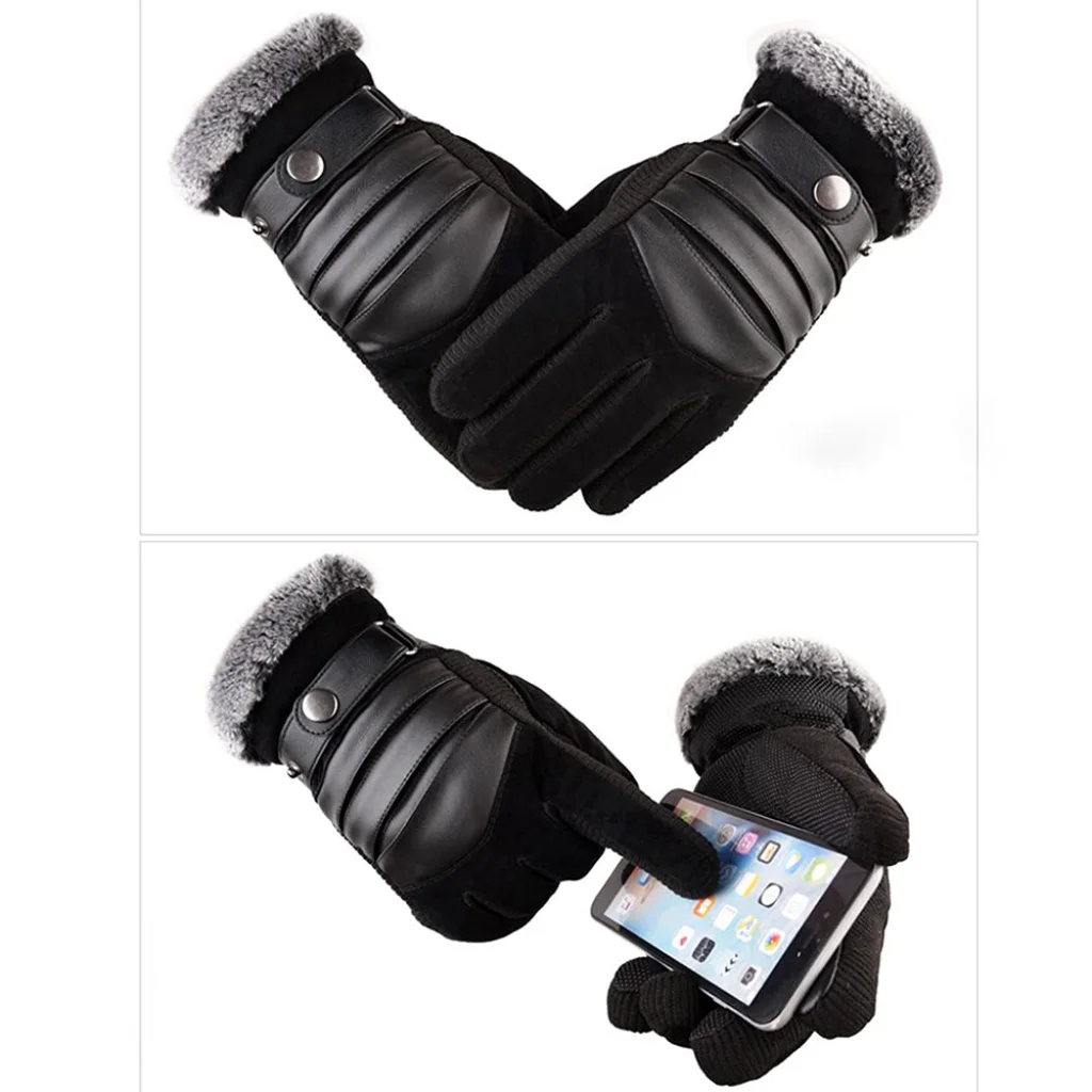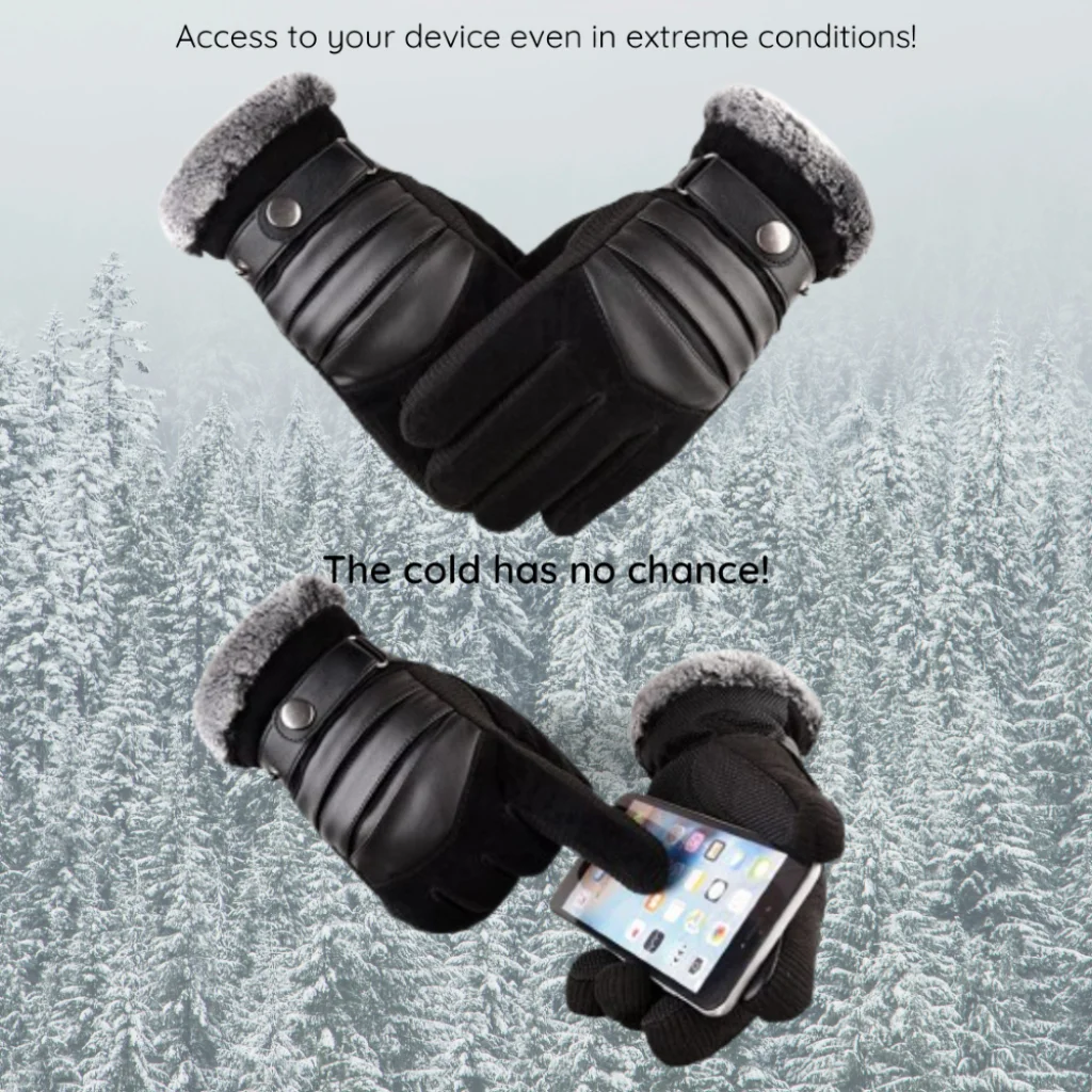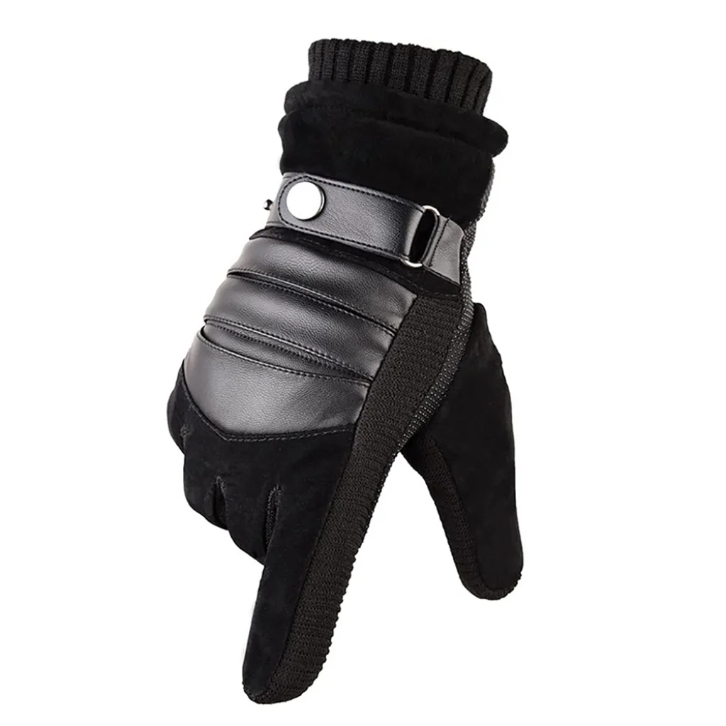 - Elegáns design: A kesztyű modern és férfias megjelenést kölcsönöz. A hátoldalán található PU bőrhatású betétek vízszintes steppeléssel, valamint egy dekoratív, fém gombbal rögzített pánt elegáns és dinamikus megjelenést biztosít. A szürke (a képeken látható fekete alapon szürke műszőrme mandzsettával) kiválóan passzol bármilyen téli ruházathoz.