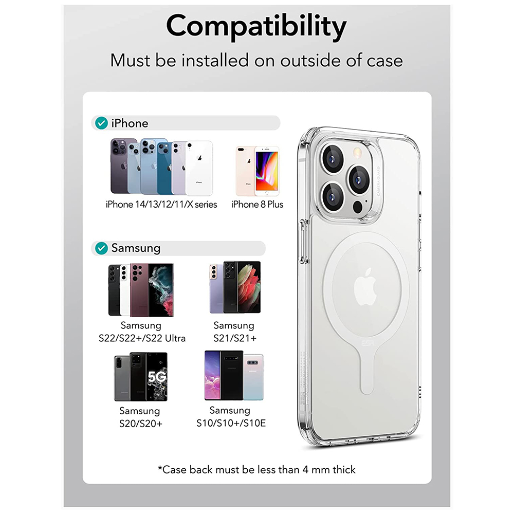 Termék leírás ESR - HaloLock adapter (2 darabos) - Kompatibilis MagSafe vezeték nélküli töltéssel, univerzális telefontartó Samsung és iPhone készülékekhez - Fehér