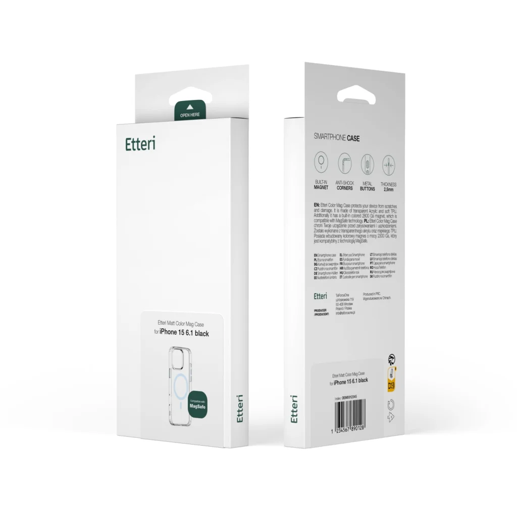 Az Etteri Color Mag tok ütésálló sarkokkal is rendelkezik a fokozott védelem érdekében. Az egész termék minimalizmusra és környezetbarát papírcsomagolásra összpontosít, hangsúlyozva a modern és fenntartható dizájnt.