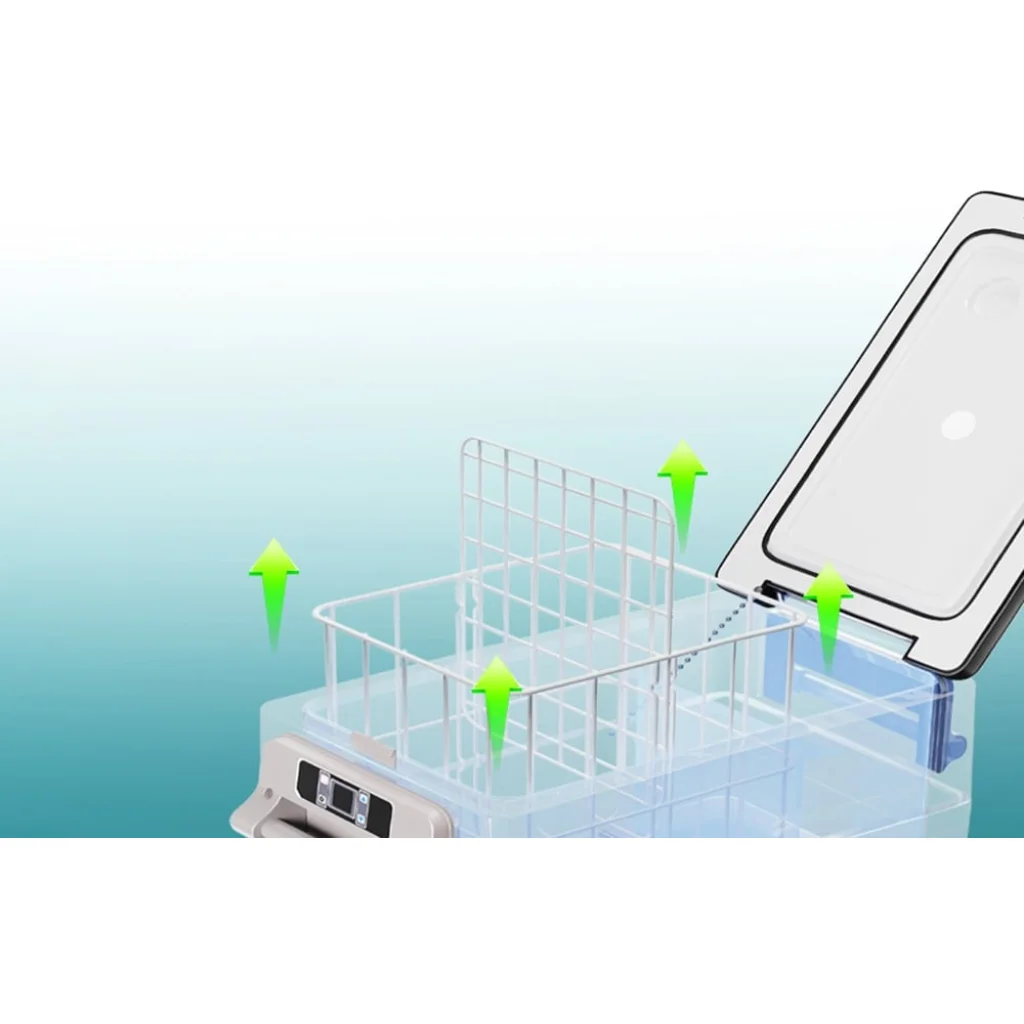 A gyors hűtést a nagy teljesítményű kompresszor biztosítja, amely hűtőpatron használata nélkül is hatékony -20°C és 20°C között. A 30 literes kapacitása elegendő élelmiszer tárolására egy egész napos utazáshoz vagy hétvégi kiránduláshoz. A kivehető belső kosár akadálymentes rendszerezést és tisztítást biztosít.