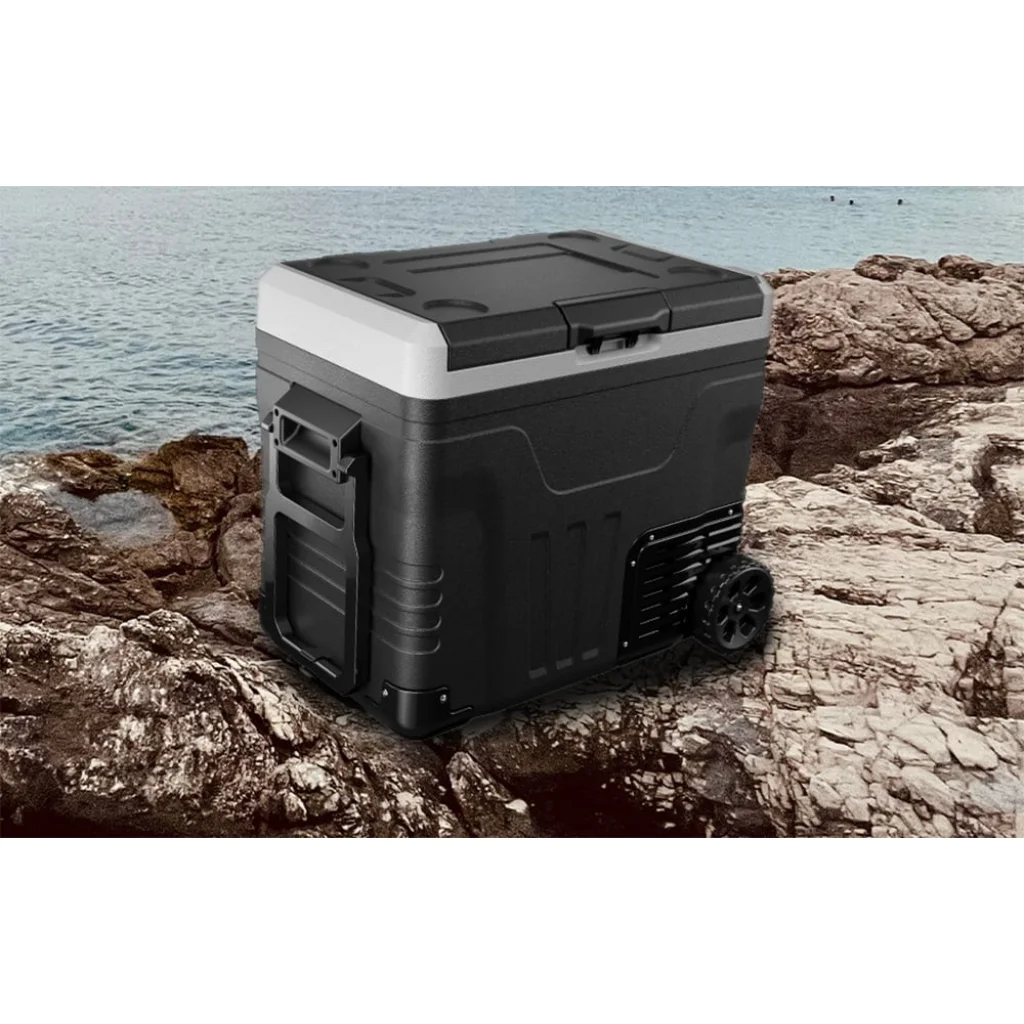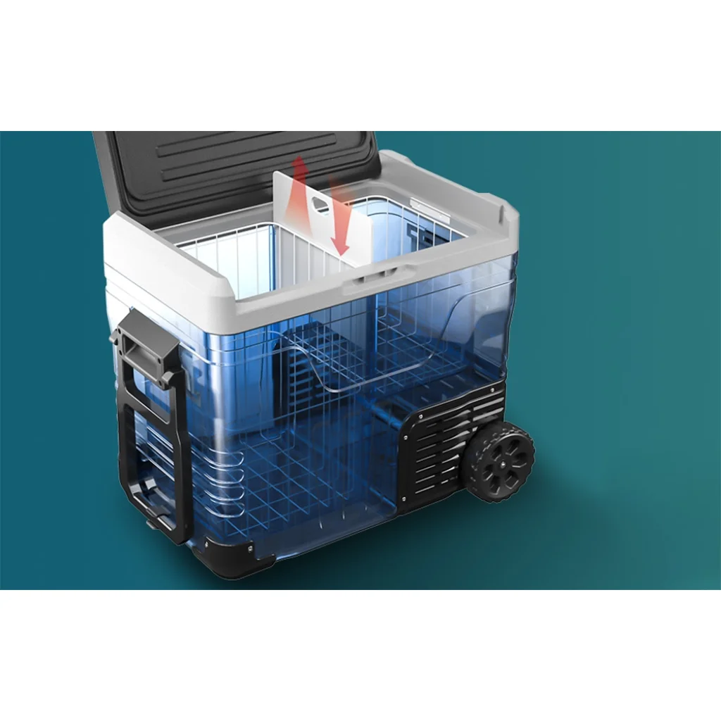 Az Euhomy CF003 a CFB sorozatból egy 12V-os autós hűtőszekrény, amely egyesíti a robusztus hűtést a szállítás kényelmével. Körülbelül 50 literes kapacitása kiválóan alkalmas családi kirándulásokhoz, hétvégi kiruccanásokhoz vagy hosszabb autóutakhoz. A beépített kerekek és a teleszkópos fogantyú egy mobil minihűtőszettet tesznek belőle, amelyet bőröndként húzhat. A vezérlés intuitív az érintőképernyőnek és a mobilalkalmazásnak köszönhetően, a praktikus belső kialakításnak köszönhetően pedig minden ételt vagy kedvenc italát rendszerezheti.
