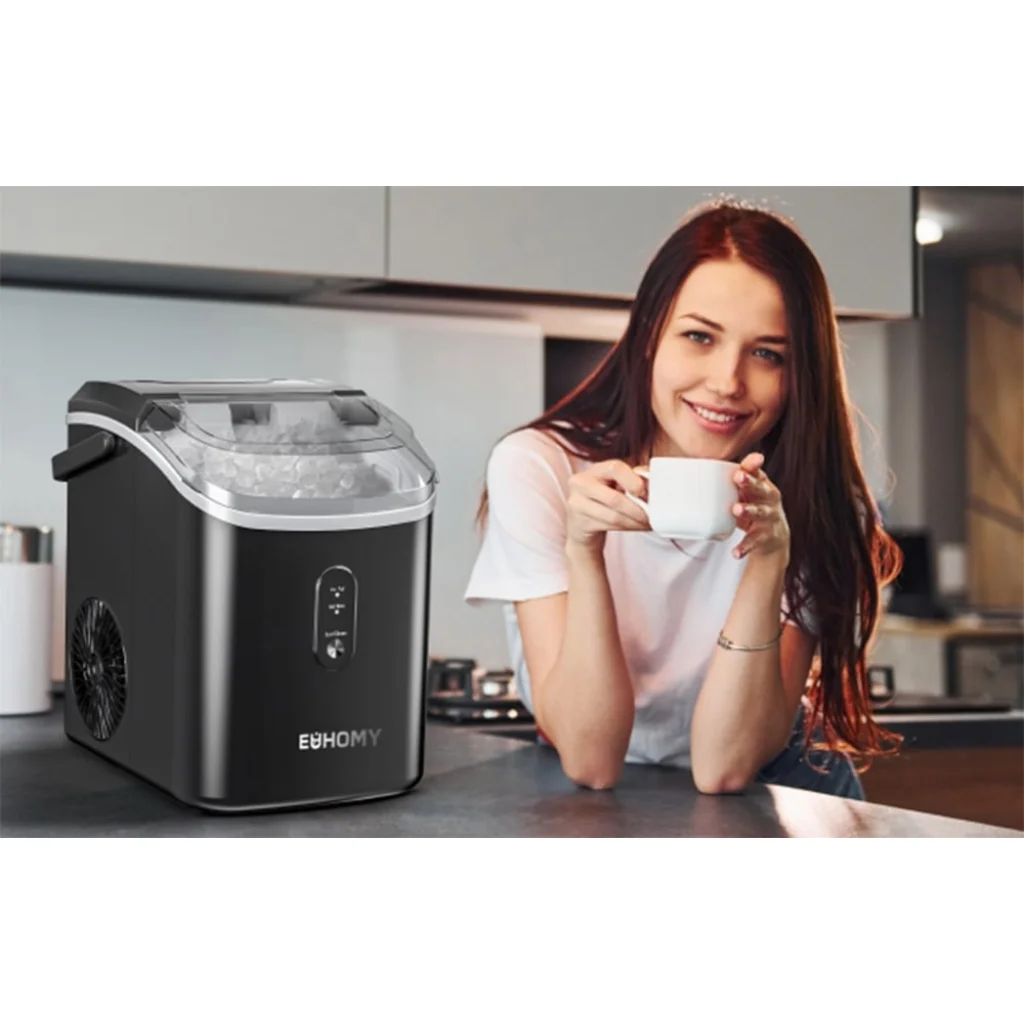 Az Euhomy IM002 jégkészítő friss, puha rögös jeget biztosít - tökéletes italok hűtéséhez, rágáshoz és keveréshez. Az első adag jeget már 6 perccel az indítás után megkapja, a napi teljesítmény pedig eléri a kb. 2200 darabot. A készülék halkan működik, energiatakarékos, és könnyen elfér a konyhai pulton, a lakókocsiban vagy a kempingben. Remekül használható partikra, az irodában vagy a konyha mindennapi kiegészítőjeként.
