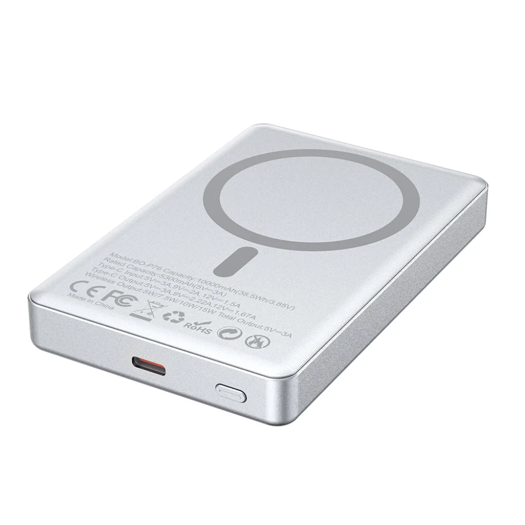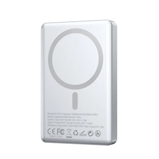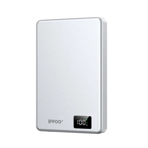 Az Ezüst BWOO mágneses power bank P76 a legmodernebb technológiát és az elegáns dizájnt ötvözi, hogy útközben is mindig feltöltve maradj. Ez az ultra-vékony, mégis rendkívül strapabíró külső akkumulátor 10000 mAh kapacitásával és sokoldalú töltési lehetőségeivel ideális társad lesz a mindennapokban és utazásaid során egyaránt.