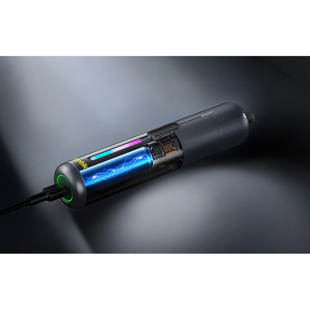 A 2000 mAh-s akkumulátor hosszú üzemidőt biztosít anélkül, hogy gyakran kellene tölteni. Az 5 V/1 A USB-C port gyors és univerzális töltést tesz lehetővé, így a csavarhúzó gyakorlatilag bármikor használatra kész.