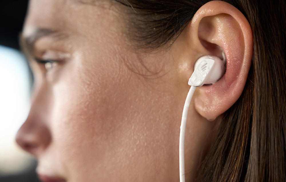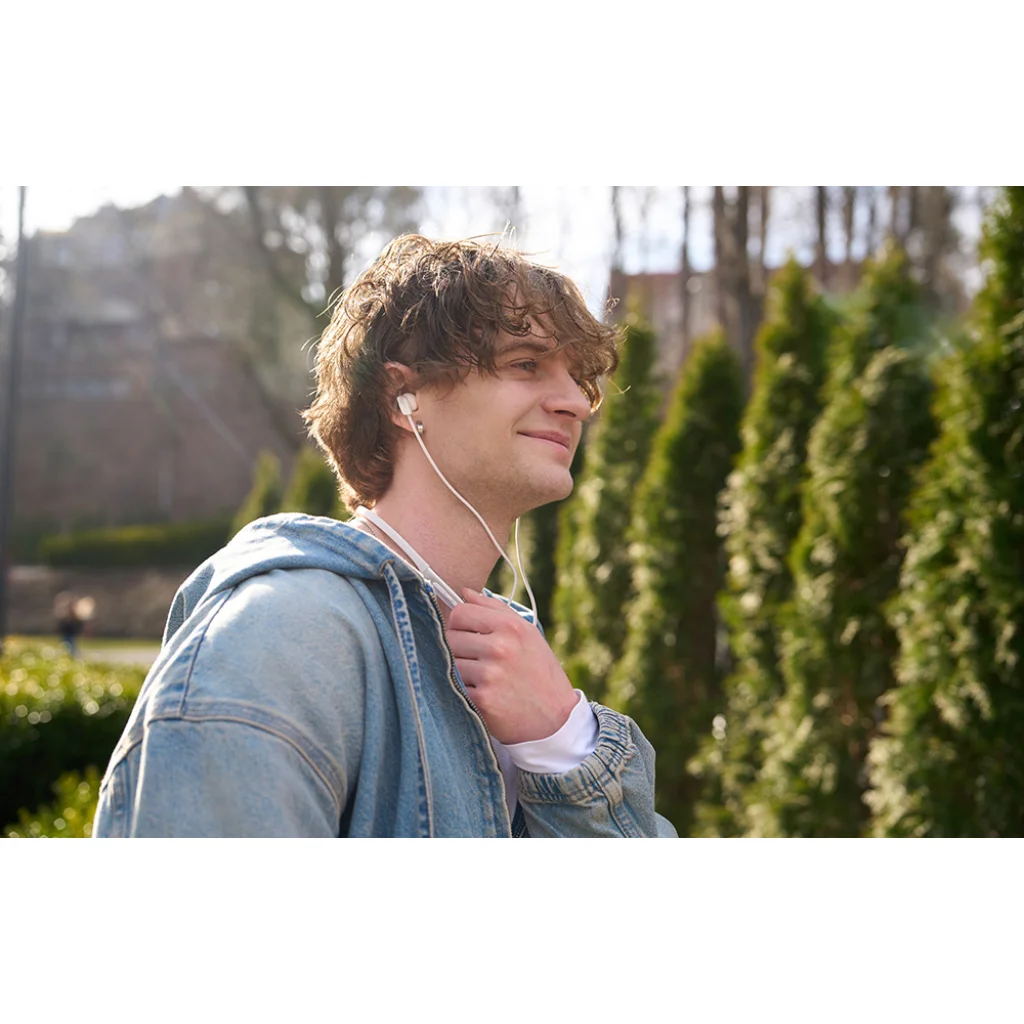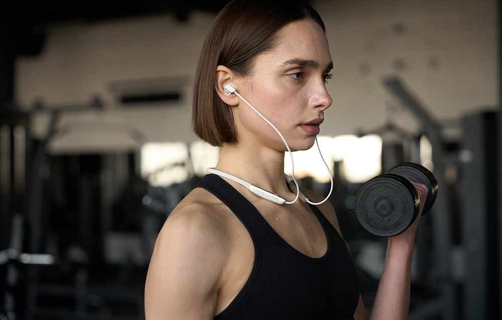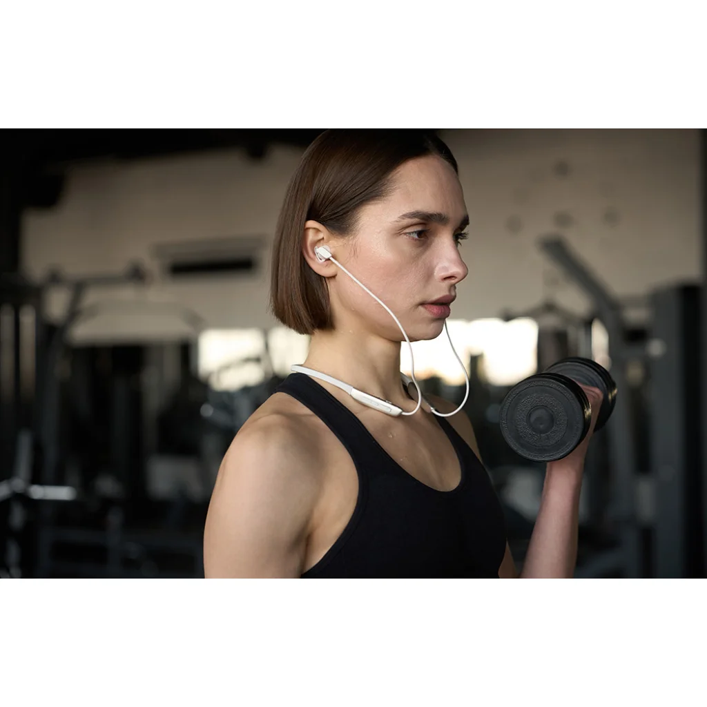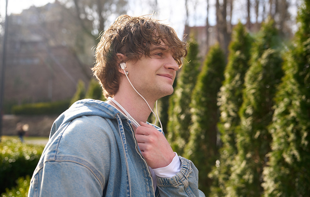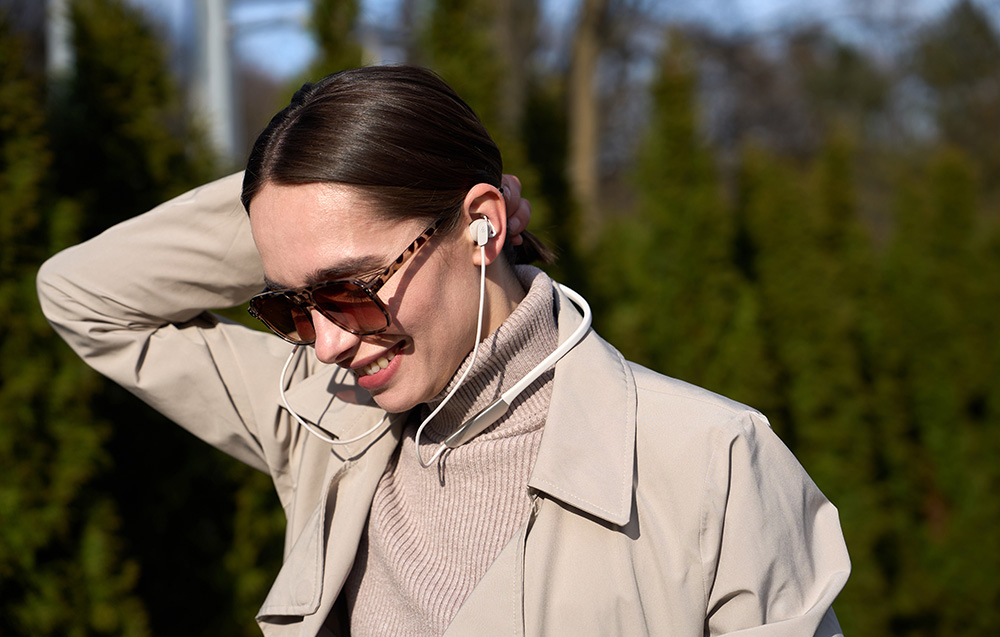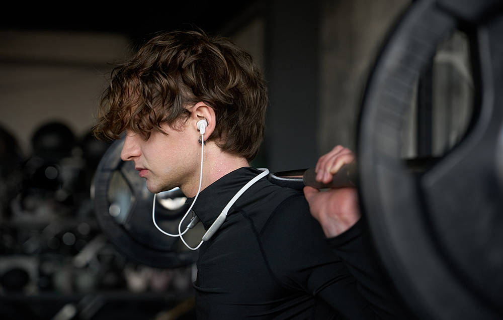 A puha, rugalmas TPE fejpánt szorosan illeszkedik a nyakadhoz, és nem csíp - még több órás viselés után sem. Ugyanakkor a fejhallgató nagyon könnyű (31 g), és a mágneses végeknek köszönhetően könnyen felcsíptethető és elrejthető anélkül, hogy a kábel összegabalyodna.
