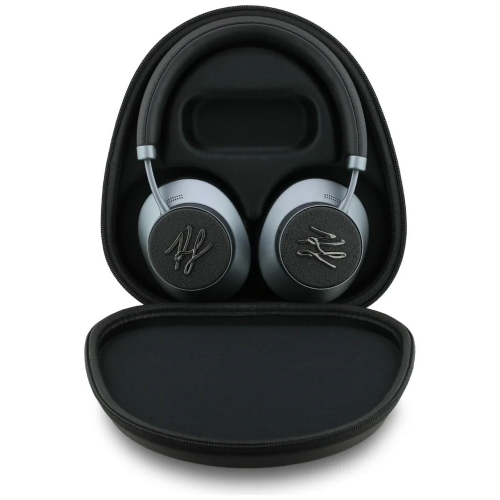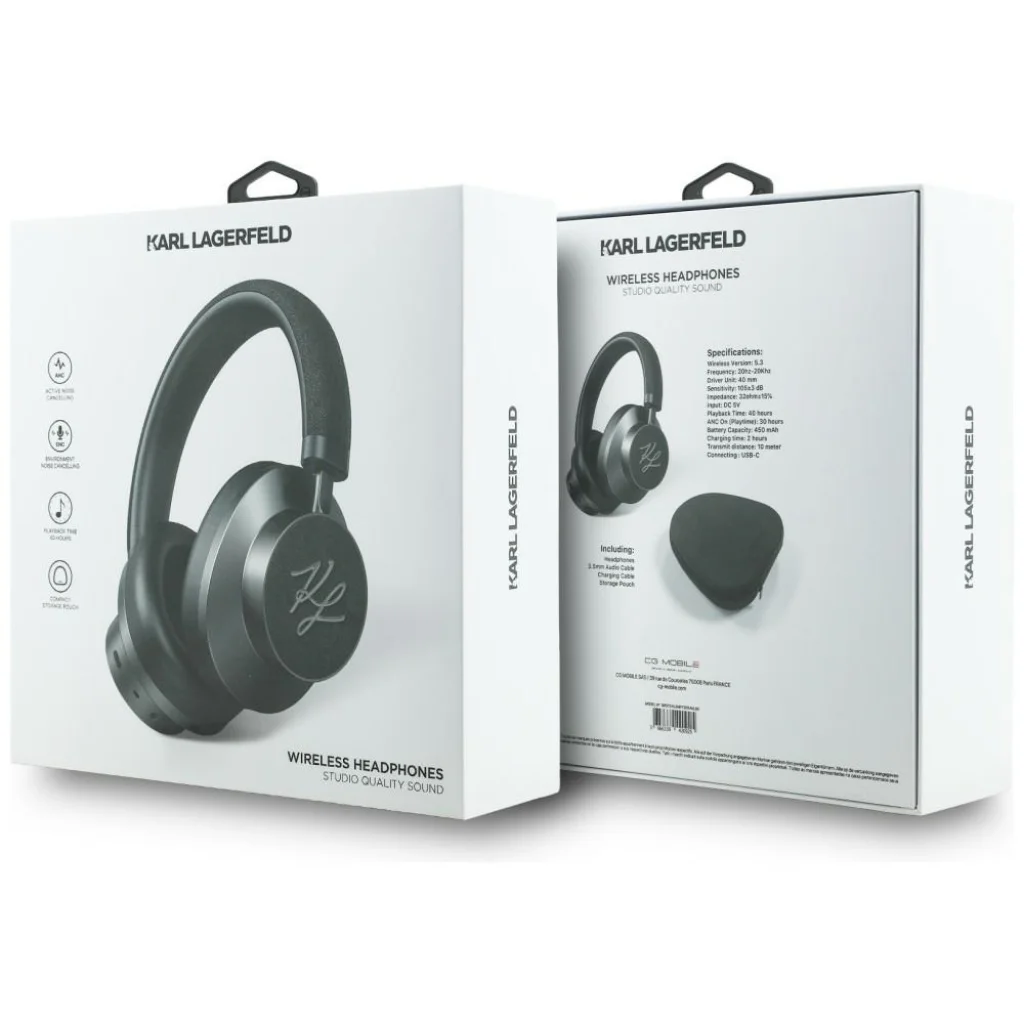 Kivételes dizájn és kényelem: A fejhallgatók a Karl Lagerfeld védjegyévé vált esztétikai stílus jegyében készültek – minimalista, modern és elegáns. A matt felületet luxus Saffiano bőr borítja a külső fülrész panelekén és a fejpánton, mely időtlen karaktert kölcsönöz nekik. A finom fémes logó presztízst ad, kiemelve a termék divathagyományait.