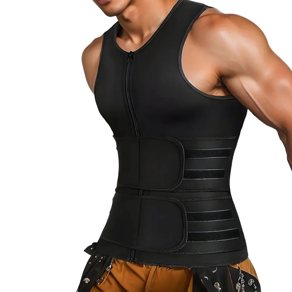 A Férfi edző neoprén mellény RC-K-1365 S méretben, elegáns fekete színben tökéletes társad lesz a mindennapi edzések során. Ez a mellény kifejezetten arra készült, hogy maximalizálja az izzadást és támogassa a zsírégetést a hasi és deréktájon, miközben kényelmes és szabad mozgást biztosít.