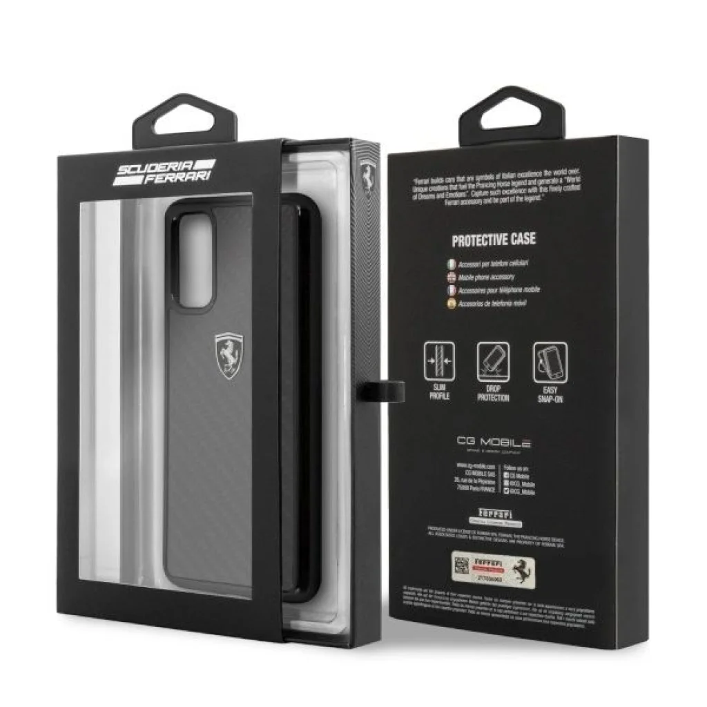 A Heritage Carbon Fiber kollekció időtlen eleganciája, amely valódi szénszálból készült, amit a Forma 1-es autókban és golyóálló mellényekben használnak. Az rendkívül tartós tokok rendelkeznek a telefon funkciógombjai számára szükséges kivágásokkal, így lehetővé téve a készülék szabad használatát. Rendkívül gondosan készült, a háromdimenziós szénszálas szerkezetet a Ferrari fém logó szignálja. Kollekció: Heritage Típus: Hardcase Anyag: Szénszálas Fekete szín Kompatibilitás: Samsung Galaxy S20 G980 Termék, amely a Ferrari engedélyével készült.