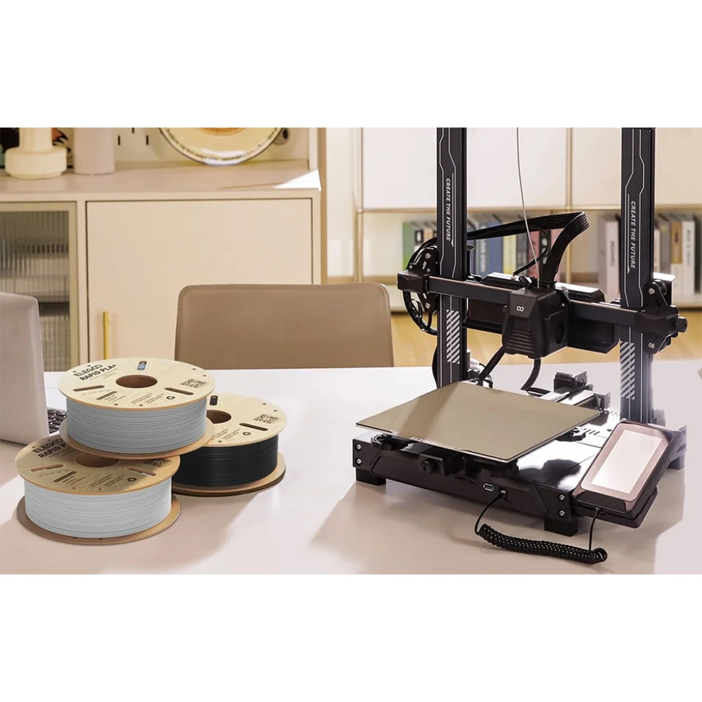 A filament pontosan fel van tekerve az orsóra, és egyenletes, 1,75 mm átmérőjű, +/- 0,02 mm pontossággal. Ez azt jelenti, hogy a nyomtatás során nem fordulhat elő összegabalyodás, az extruder eltömődése vagy más technikai probléma. Az anyag gyorsan és egyenletesen olvad, ami jobb nyomtatási minőséget eredményez.