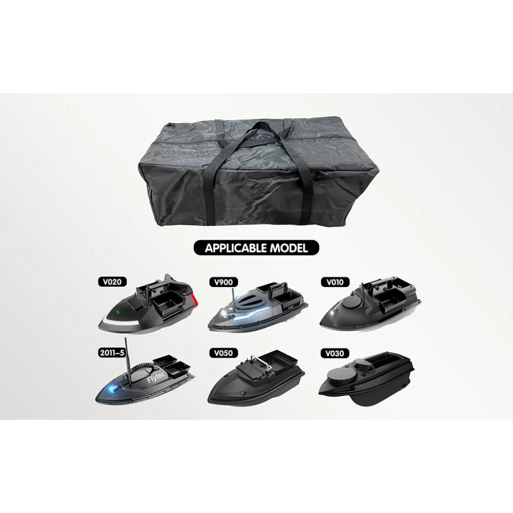 A táska kompatibilis a Flytec csalihajókkal, például a V010, V020, V030, V050, V900 és 2011-5 modellekkel, így sokoldalú megoldást jelent többféle típushoz is.