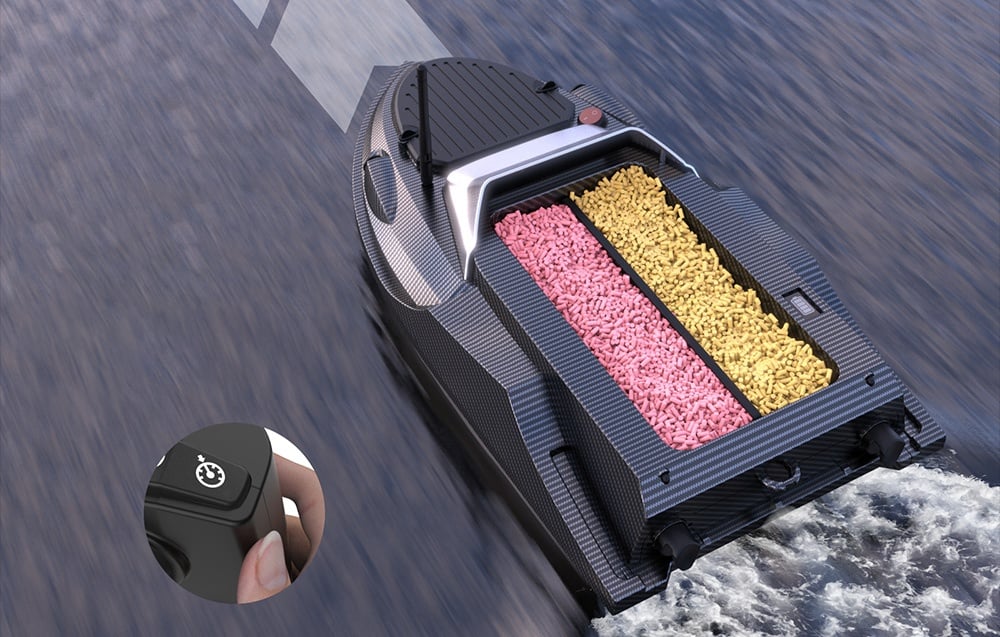 Csalizás precízen és változatosan Az akár 3 kg összkapacitású dupla tartály lehetővé teszi, hogy egyszerre kétféle csalit öntsön ki. Így kombinálhatja a stratégiákat és növelheti a horgászat vonzerejét anélkül, hogy minden alkalommal vissza kellene térnie a partra.