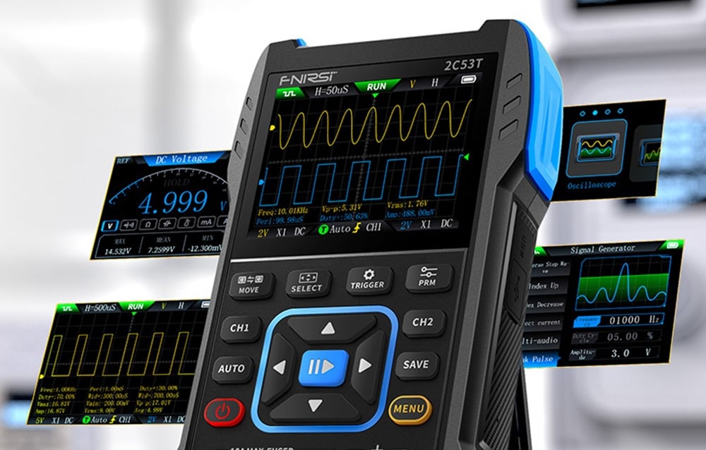- FNIRSI 2C53T hordozható 3 az 1-ben oszcilloszkóp
