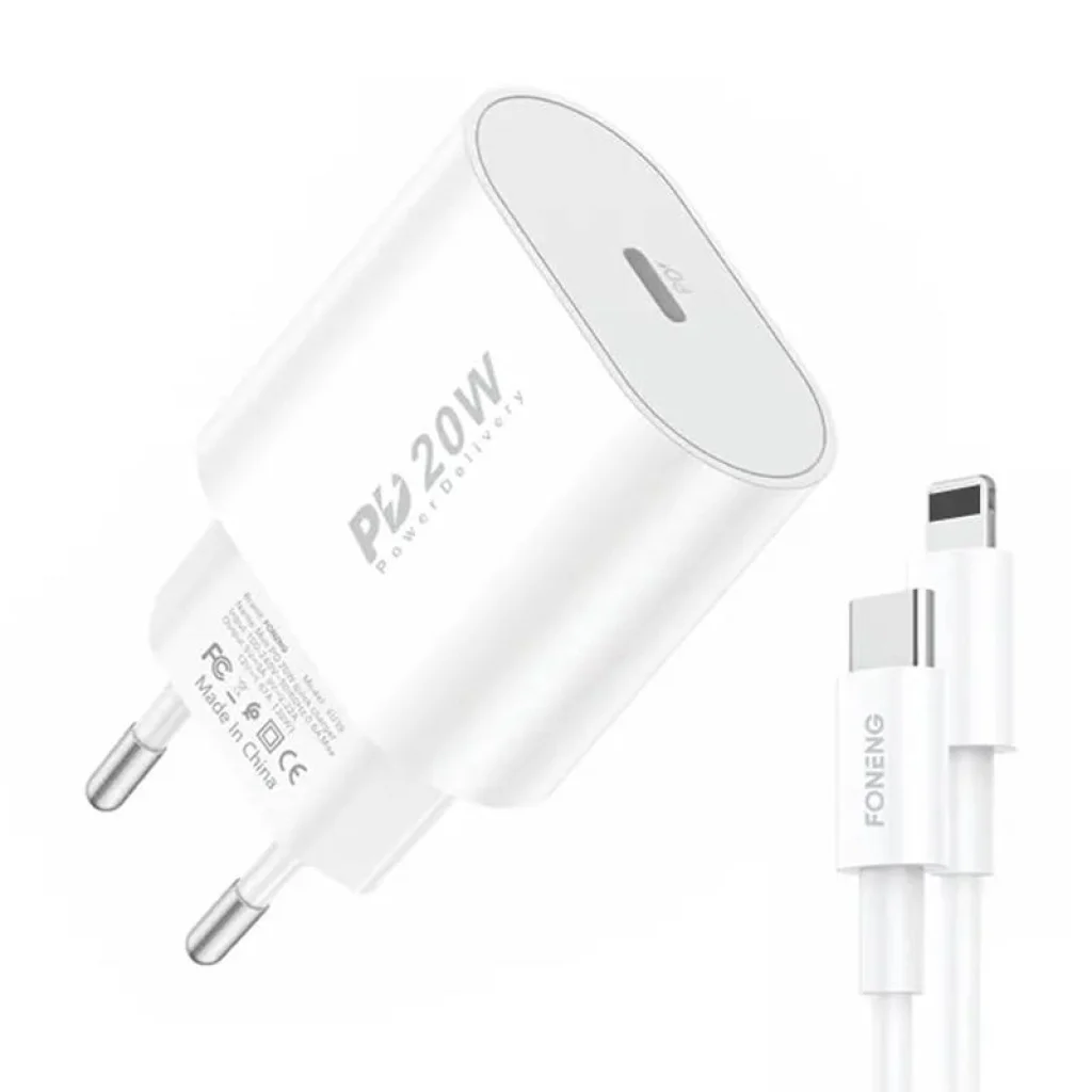 Spórolj időt a Foneng EU39 gyors töltővel. A termék egy USB-C porttal rendelkezik, támogatja a PD 3.0 gyors töltési protokollokat, és alkalmas iPhone-ok 20 wattos teljesítménnyel történő feltöltésére. Strapabíró, tűzálló anyagokból készült, és biztosítja a készülékek biztonságos töltését. Tartalmaz egy USB-C-Lightning kábelt is.