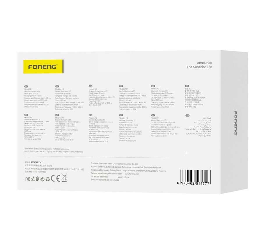 Ne hagyd abba a bulit a lemerült akkumulátor miatt! Az 5000 mAh-s nagy kapacitású akkumulátornak köszönhetően a FONENG M2 akár 13 órán keresztül is képes megszakítás nélkül zenélni, így egész nap élvezheted kedvenc számaidat. A teljes feltöltéshez mindössze körülbelül 7 órára van szüksége.