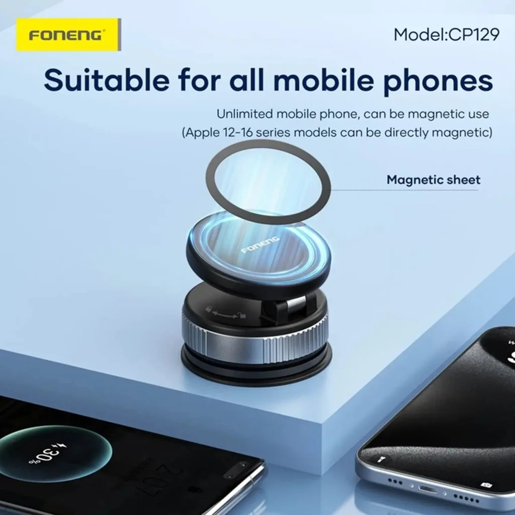 A FONENG CP129 minden mobiltelefonnal kompatibilis. Az Apple 12-16-os szériái közvetlenül, mágnesesen rögzíthetők, míg a többi készülékhez a csomagban található mágneses fémgyűrű biztosítja a stabil mágneses tapadást. Nem kell aggódnia, hogy telefonja modellje nem lesz kompatibilis!