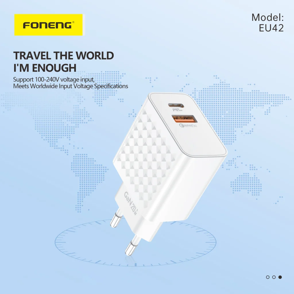 - Az ergonomikus és kompakt kialakításának köszönhetően a töltő praktikus a hordozásra, bárhol könnyen hozzáférést biztosít a töltéshez.