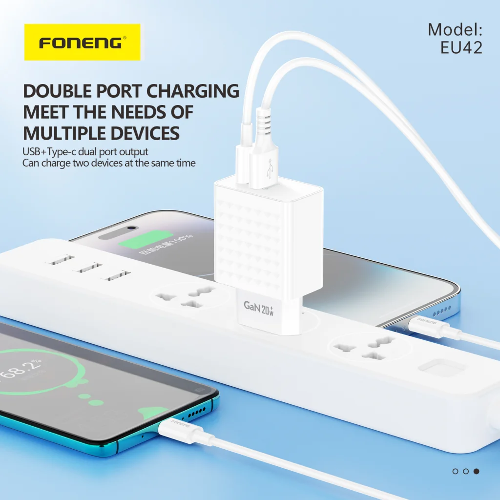 - Két töltőporttal van felszerelve - TYPE-C és USB-A. Ez rugalmasságot biztosít a felhasználóknak, hogy különböző eszközöket egyszerre tölthessenek, függetlenül attól, hogy Type-C vagy USB-A kábelt használnak.