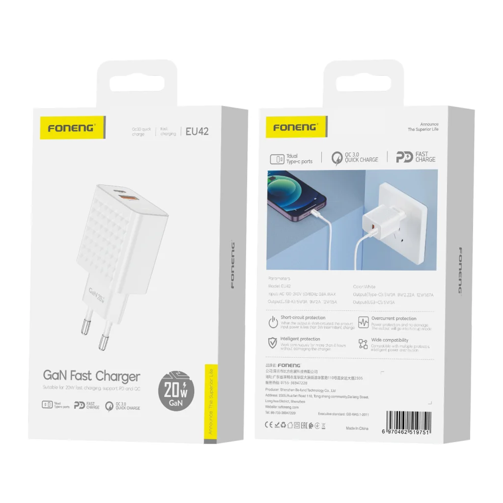 - A hálózati töltő 3A áramot biztosít, ami gyors és hatékony töltést tesz lehetővé.
