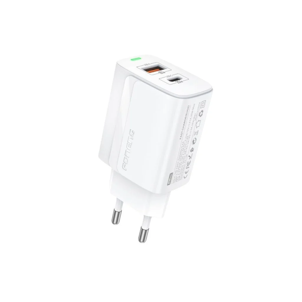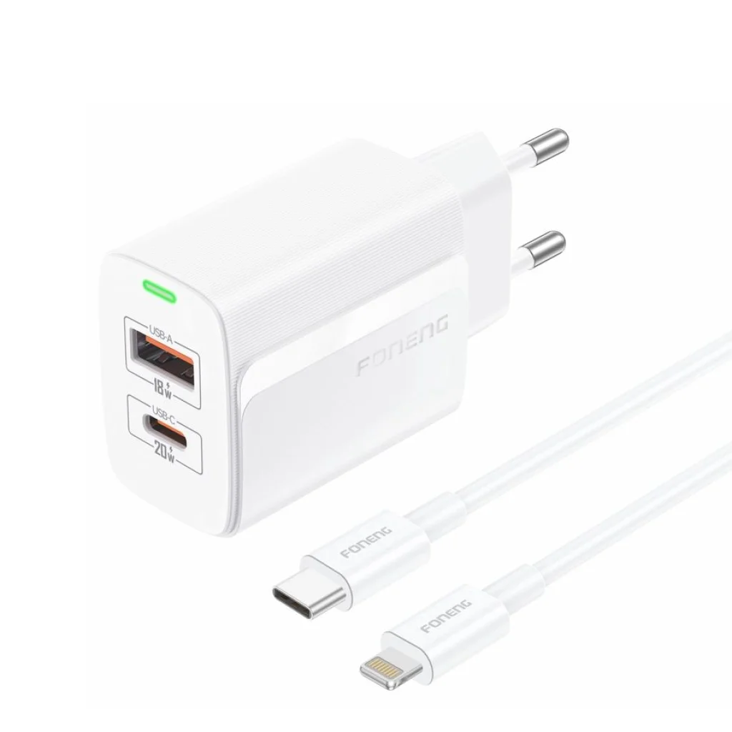 FONENG fali töltő EU66 PD 20W 1xUSB-C + 1xUSB QC3.0 + kábel USB-C - Lightning Fehér